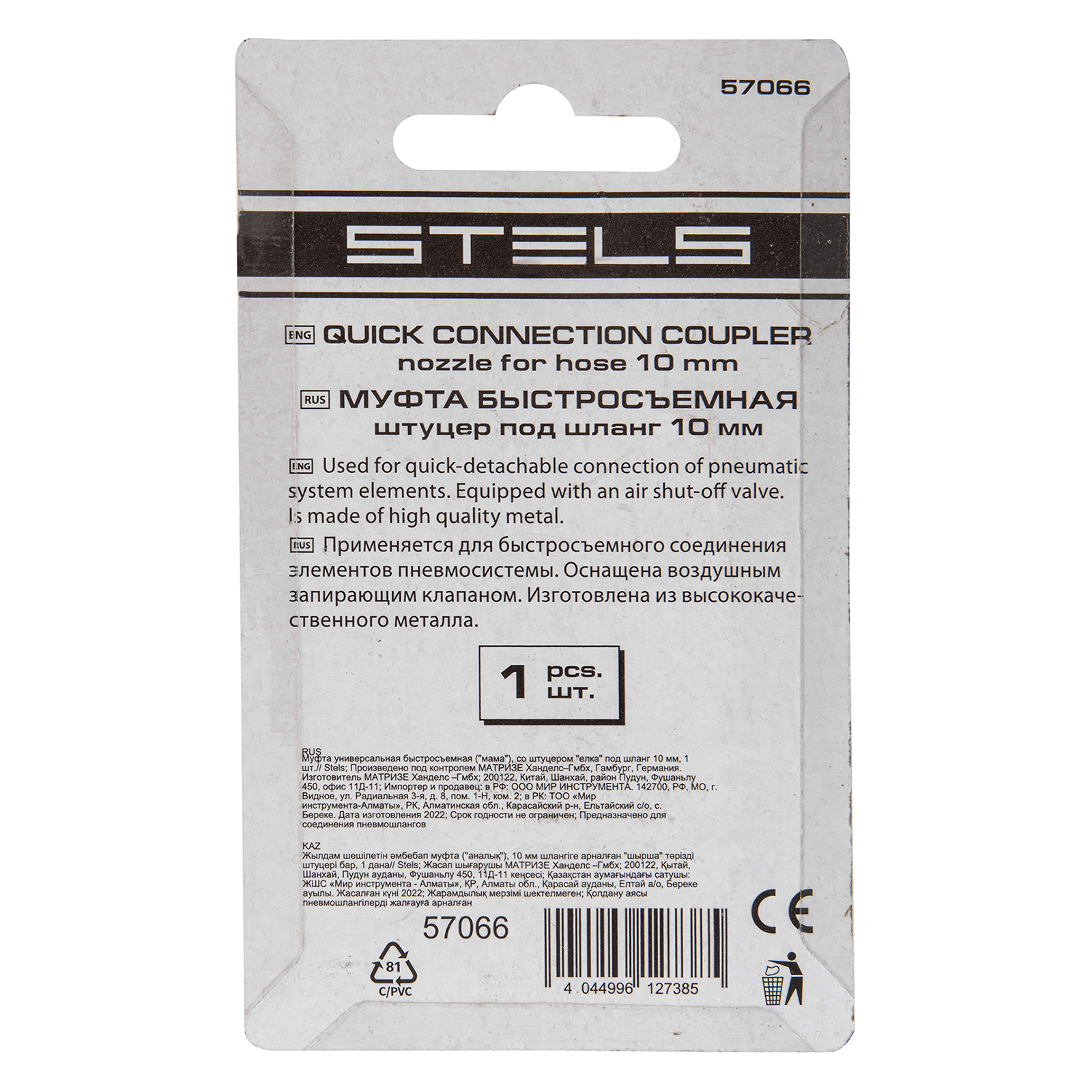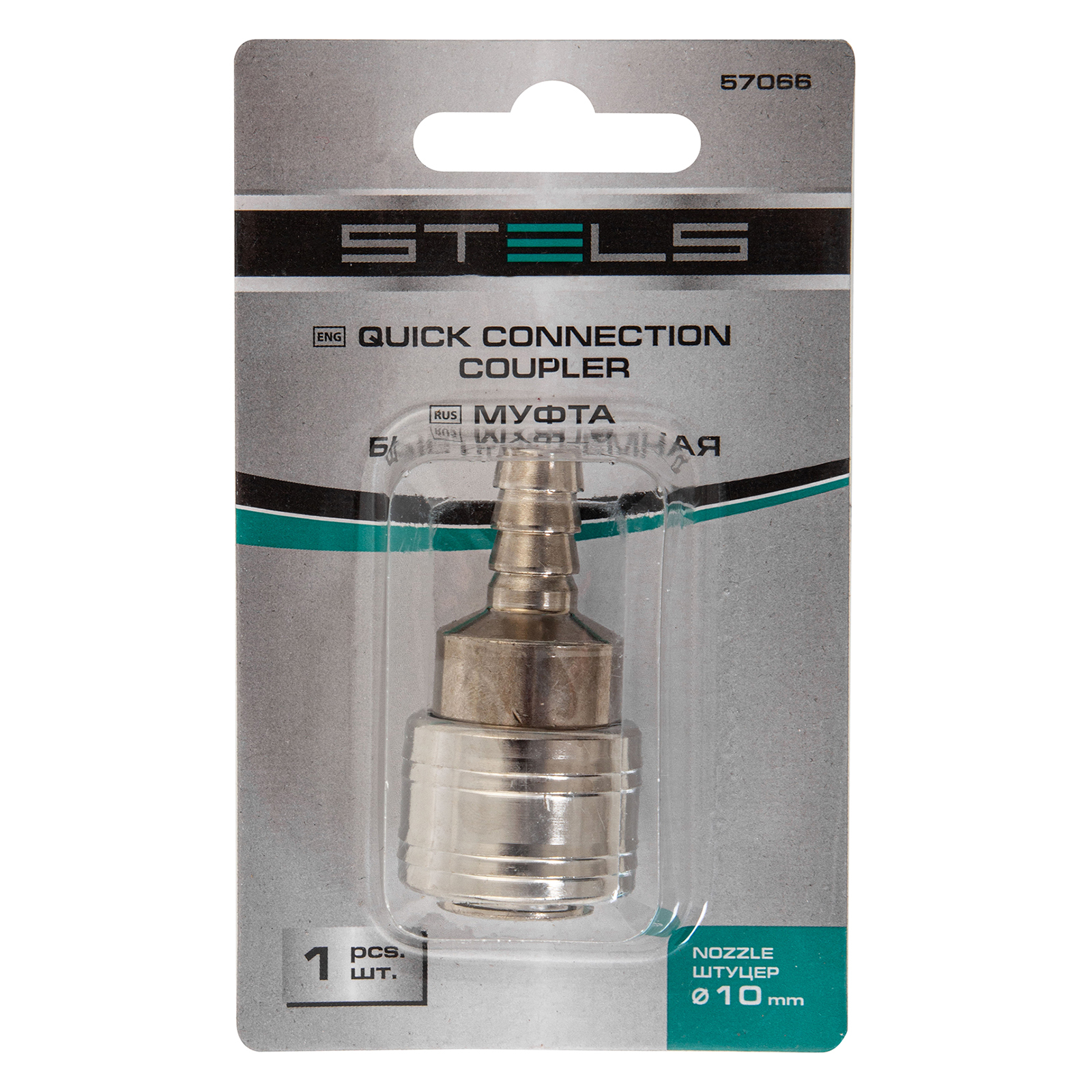 Муфта универсальная быстросъемная ("мама") со штуцером "елка" под шланг 10 мм, 1 шт, Stels