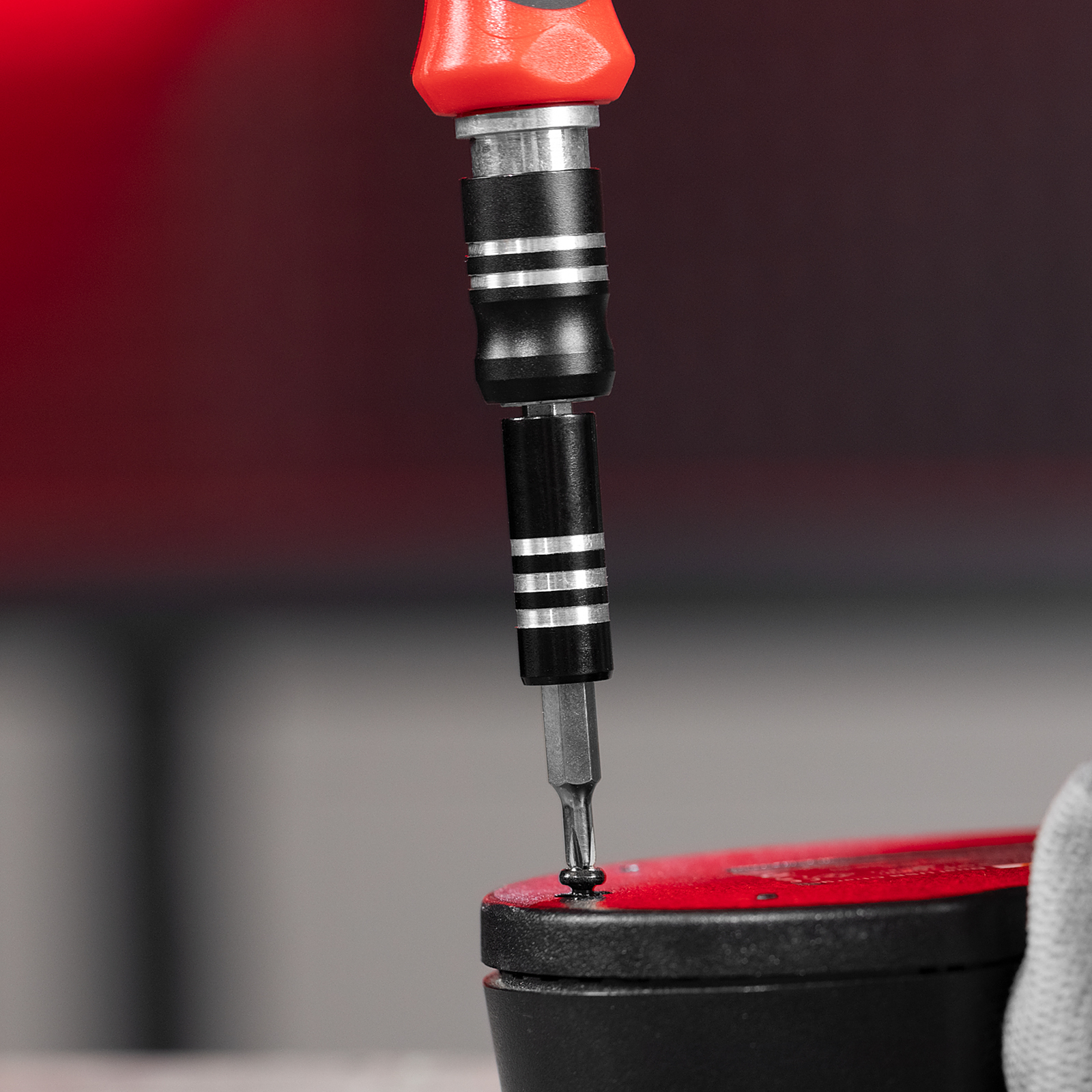 - Намагниченные биты — металлический крепеж легко доставать из углублений и направлять одной рукой.