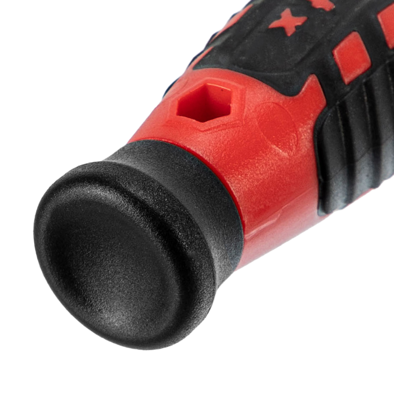 - Удобная эксплуатация — вращающийся затыльник позволяет поворачивать отвертку перебором пальцев.
