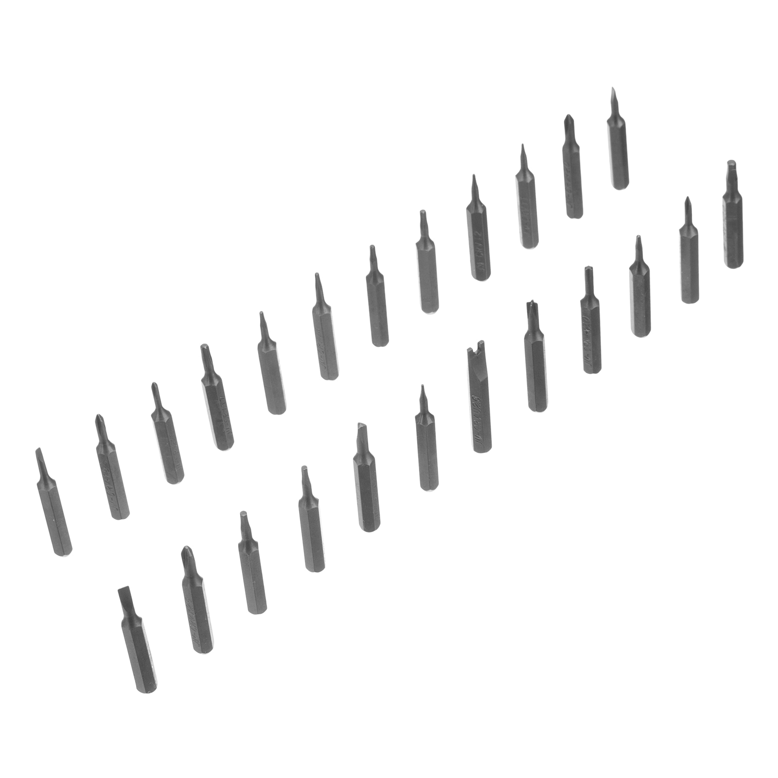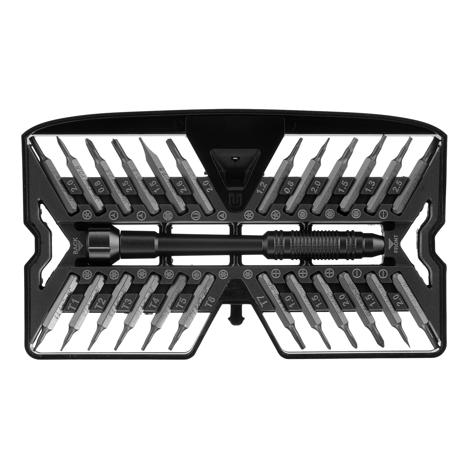 Биты для точных работ: H (1.3, 1.5, 2), T (1, 2, 3, 4, 5, 6, 7), PH (1, 1.5, 2), SL (1, 1.5, 2), Str (0.8, 1.2, 2), Y (0.8, 2), STANDOFF (1.5), TA(2.0), U (2.6) Отвертка - 1 штПластиковый кейс - 1 шт