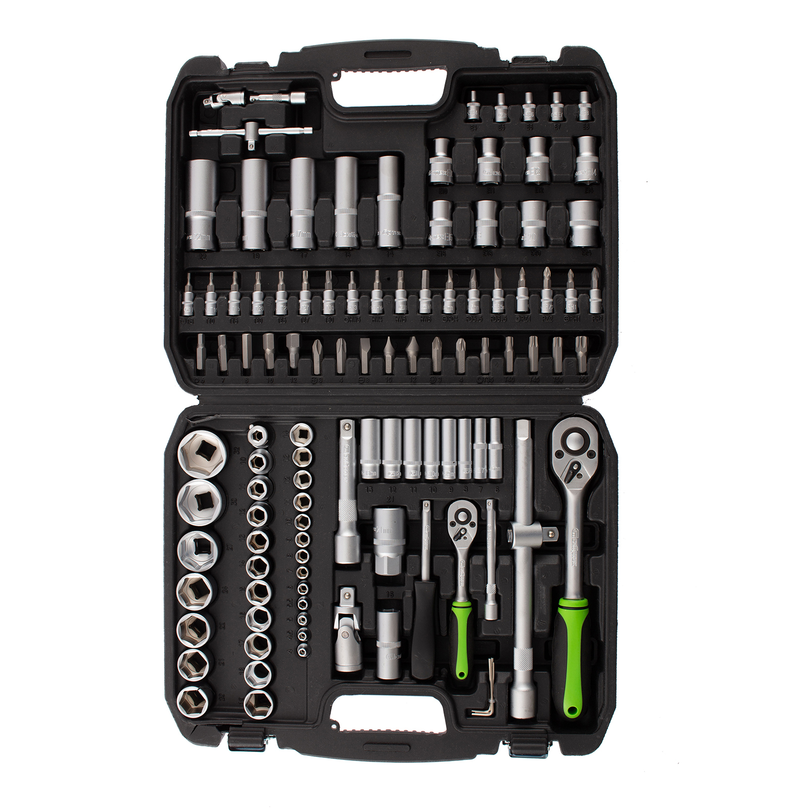 - Удобная работа в труднодоступных местах — в набор входят удлинители, карданы и удлиненные торцевые головки.
