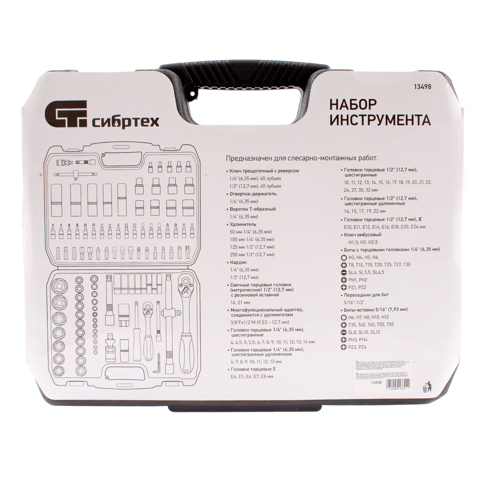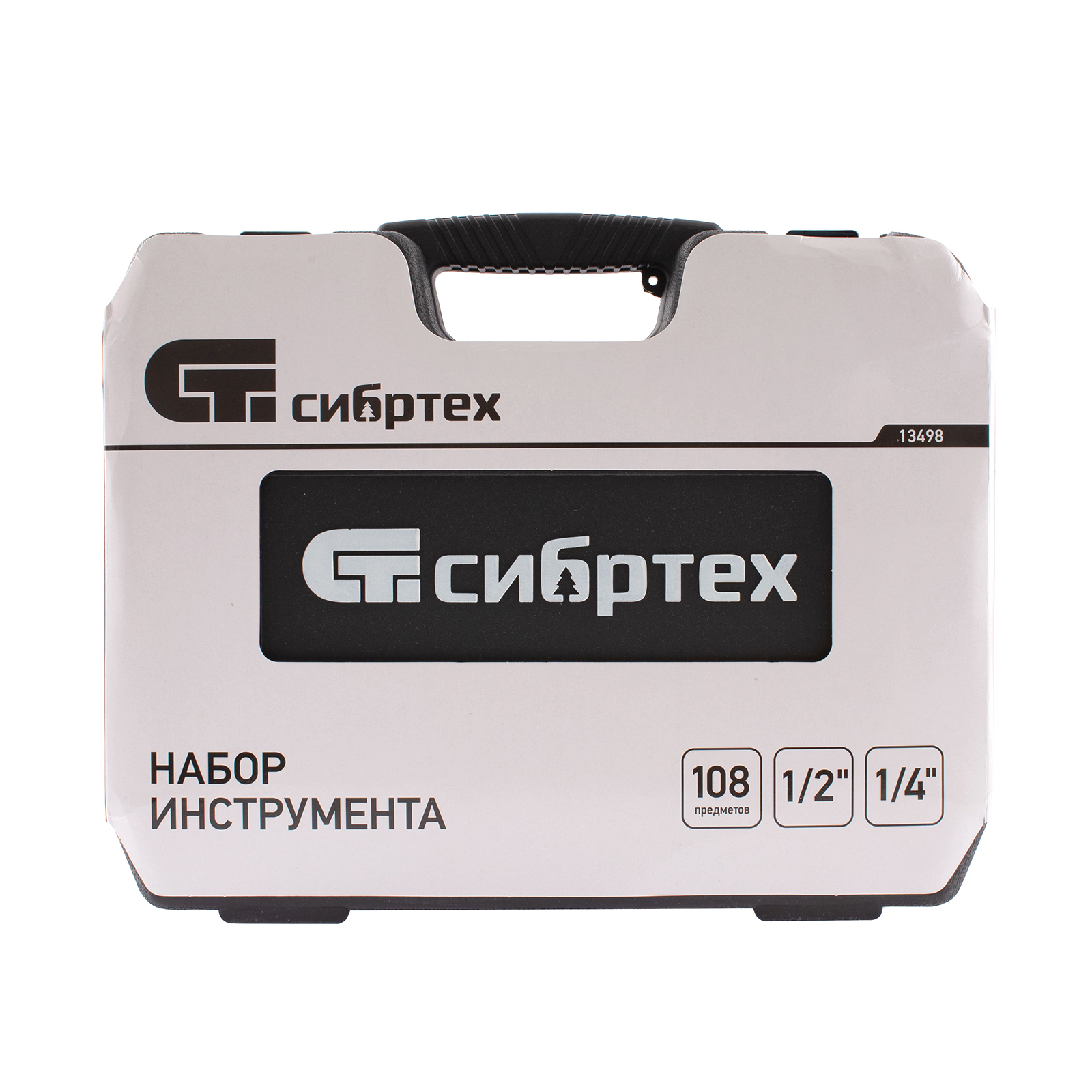 Набор инструмента, 1/2", 1/4", пластиковый кейс, 108 предметов Сибртех