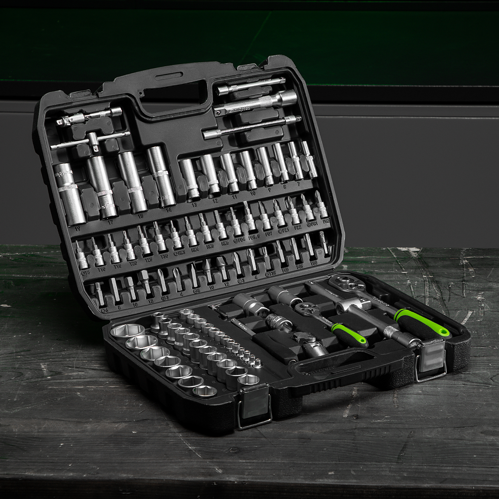 Набор инструмента Сибртех 13498 состоит из 108 предметов с присоединительными размерами 1/2" и 1/4". Предназначен для ремонта и обслуживания автомобилей, а также выполнения бытовых работ. Имеющиеся в комплекте насадки рассчитаны на крепеж с различными типами профилей и шлицев, включая HEX и TORX. Набор будет полезен автолюбителю и профессиональному мастеру.