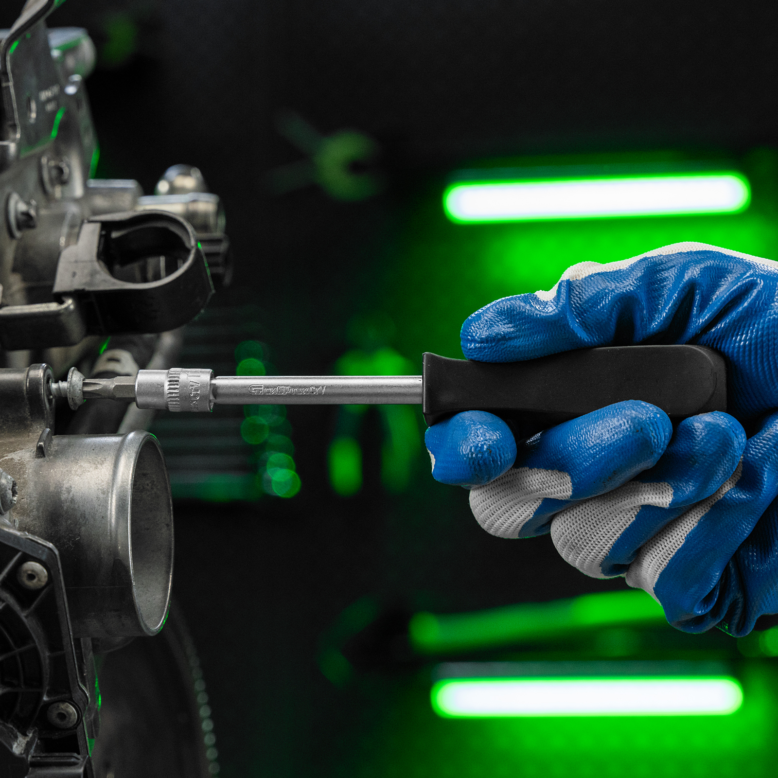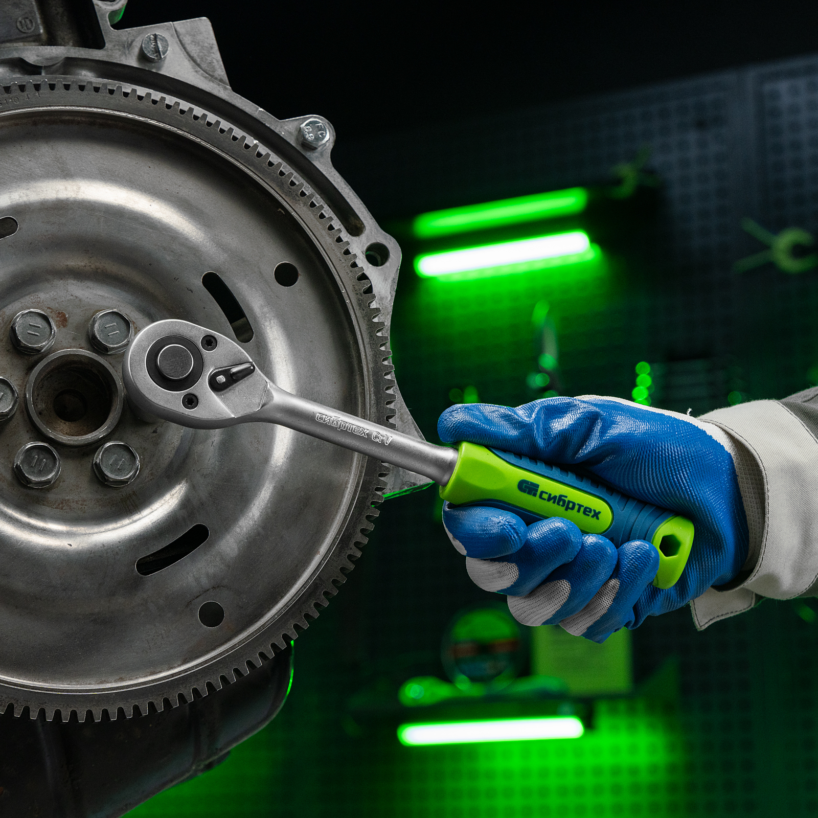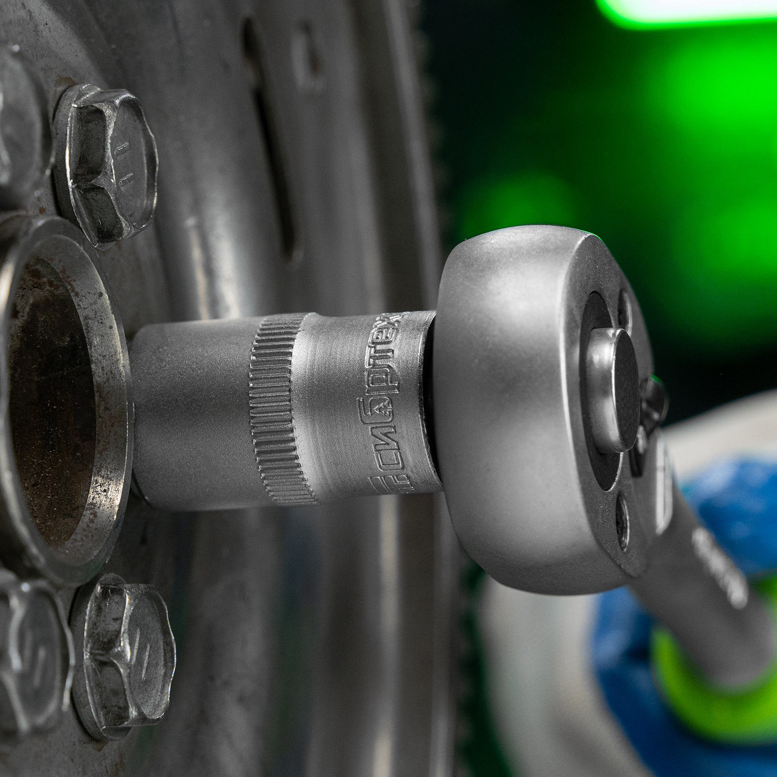 - Комфортная и эффективная работа — ключи-трещотки с 45 зубьями оснащены механизмом быстрого сброса, переключателем реверса с металлическим флажком и двухкомпонентной рукояткой.
