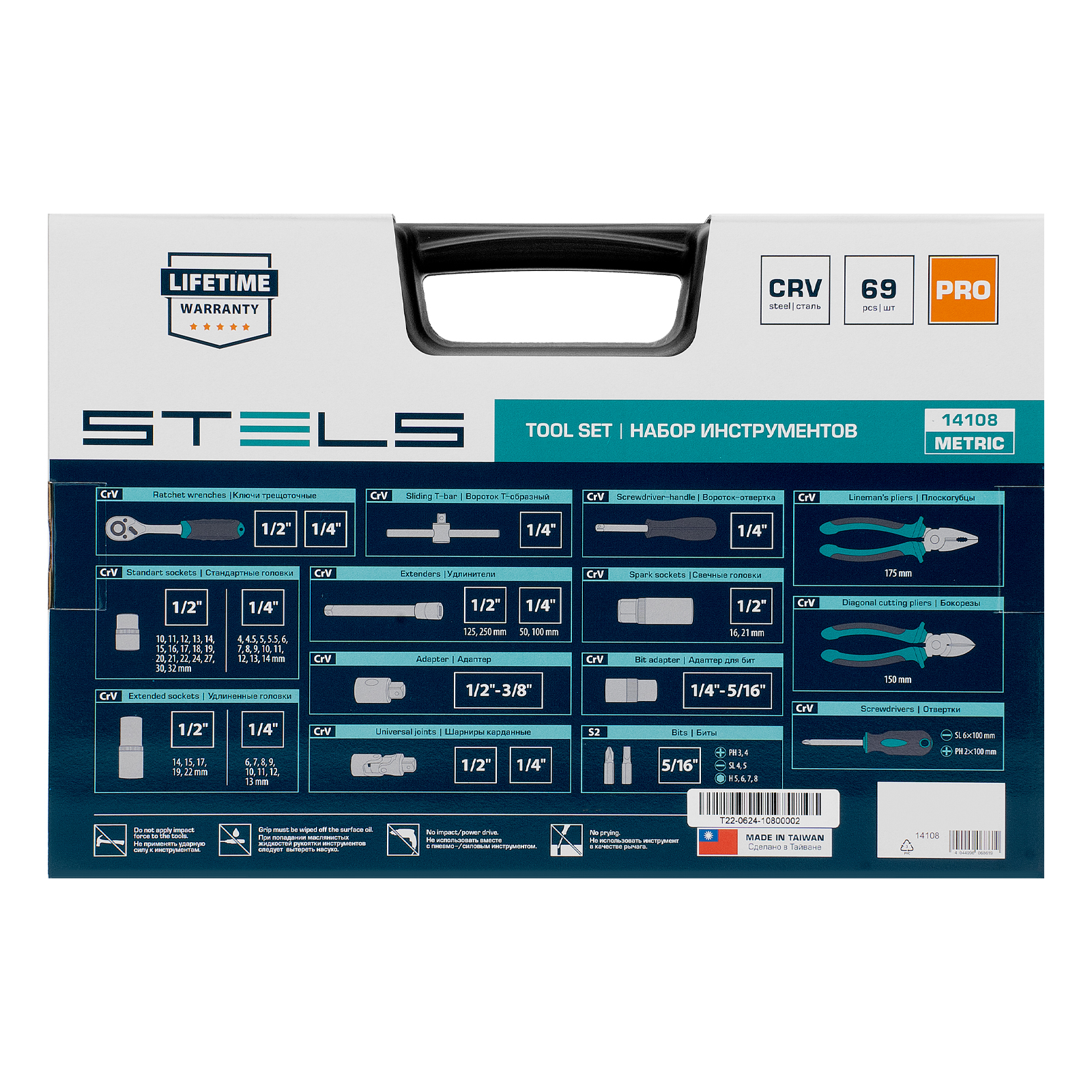 Набор инструментов, 1/2", 1/4", CrV, пластиковый кейс 69 предметов Stels