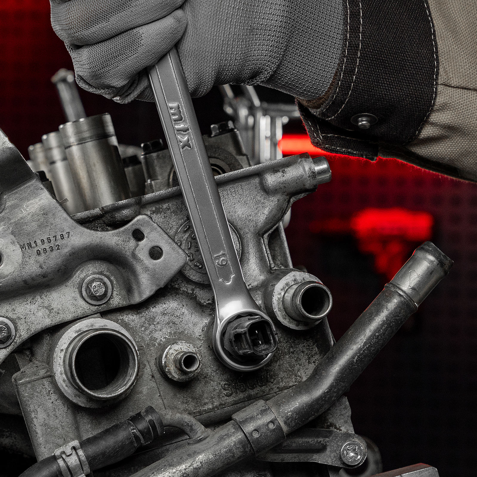 - Комфортная и эффективная работа — ключи-трещотки с 45 зубьями оснащены механизмом быстрого сброса, переключателем реверса с металлическим флажком и двухкомпонентной рукояткой.