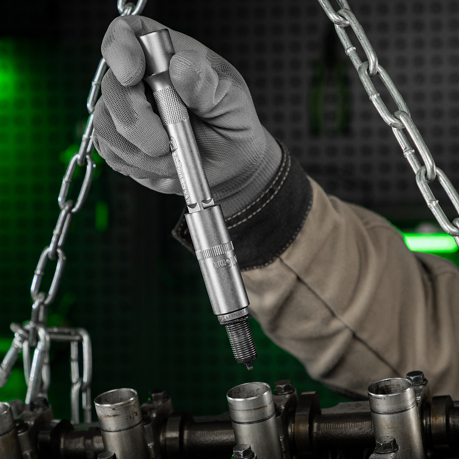 - Прочная фиксация — шариковый замок на трещотках, воротках, шарнирах и удлинителях надежно удерживает головки.