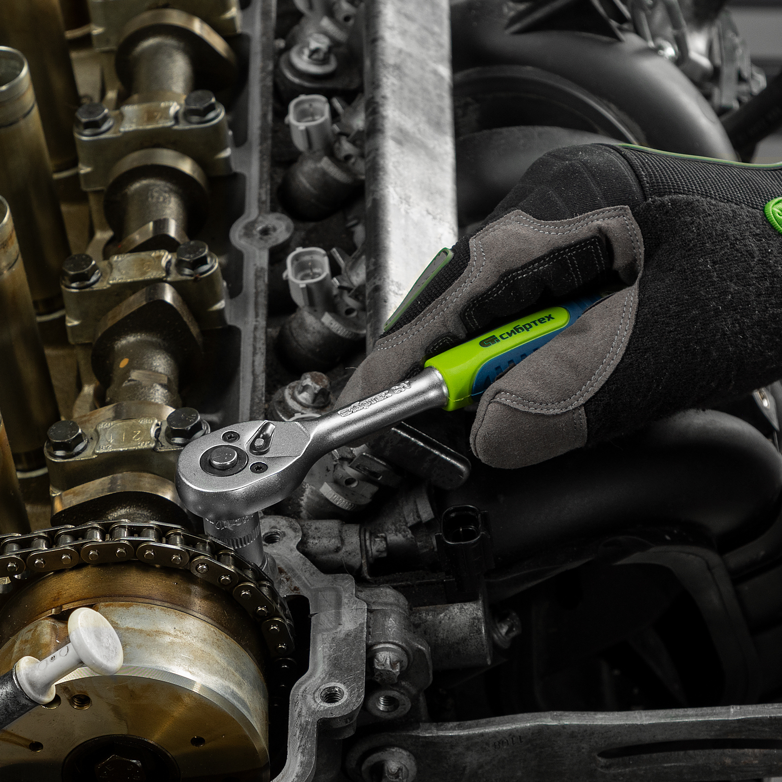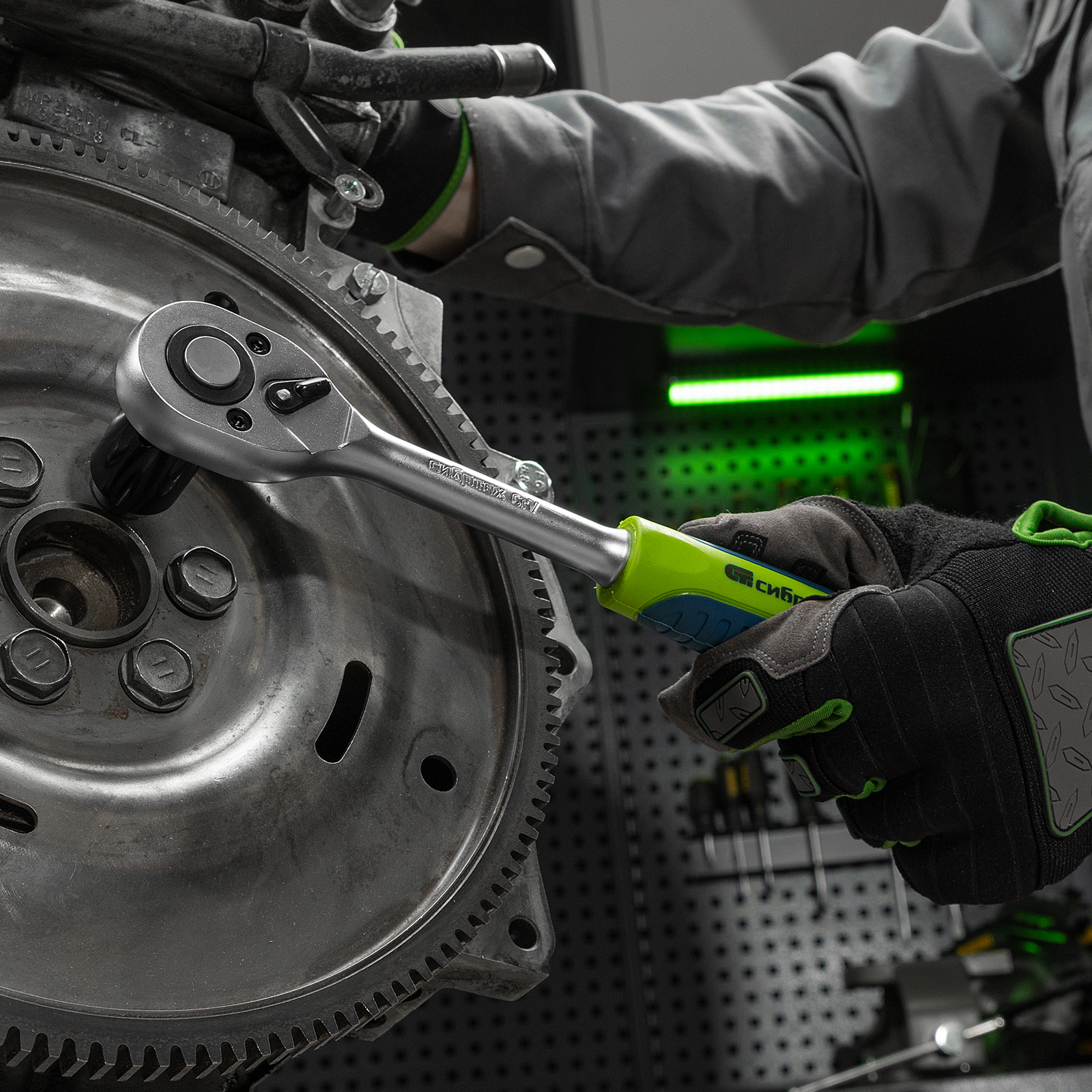 - Эргономичность — двухкомпонентные рукоятки трещоточных ключей удобно ложатся в руку.