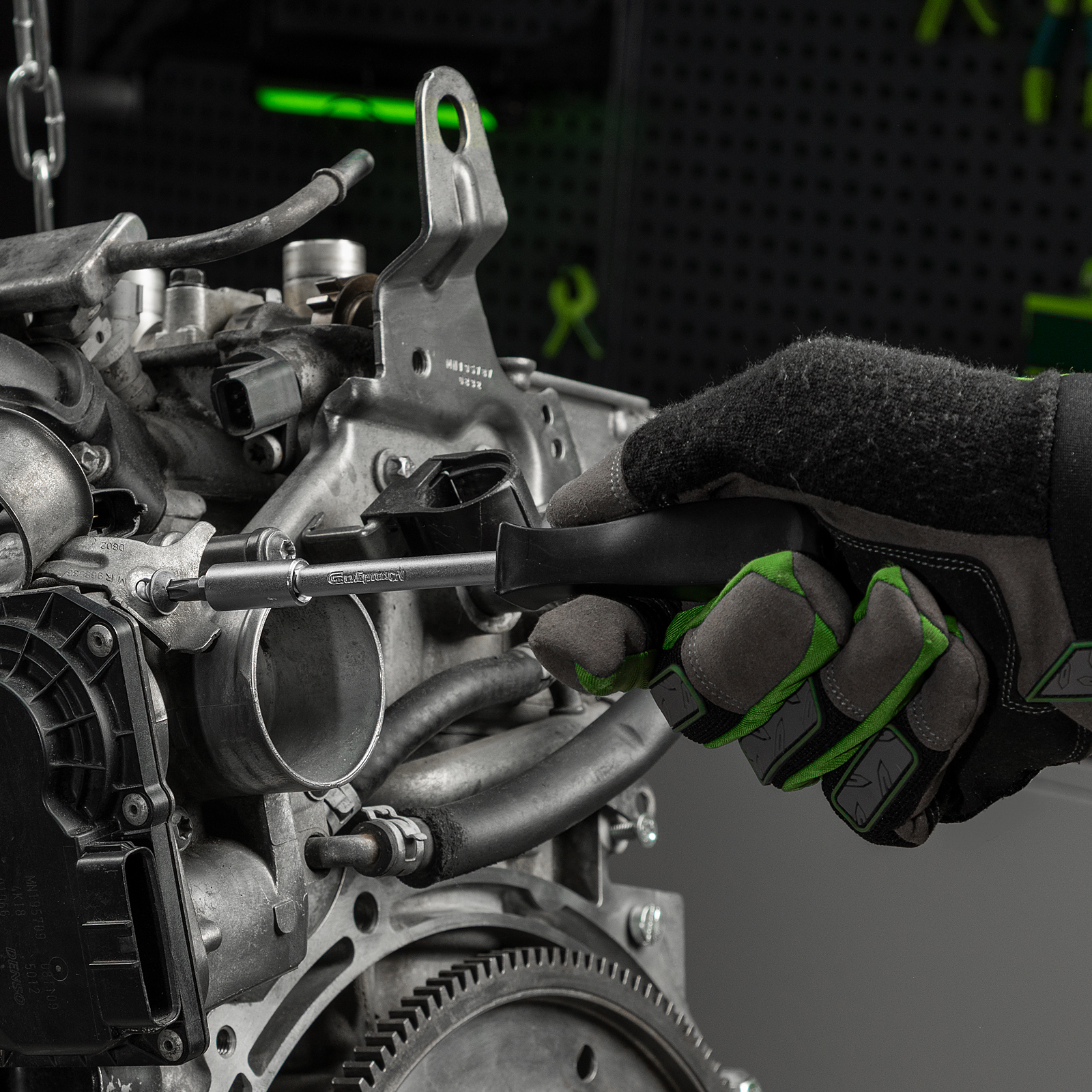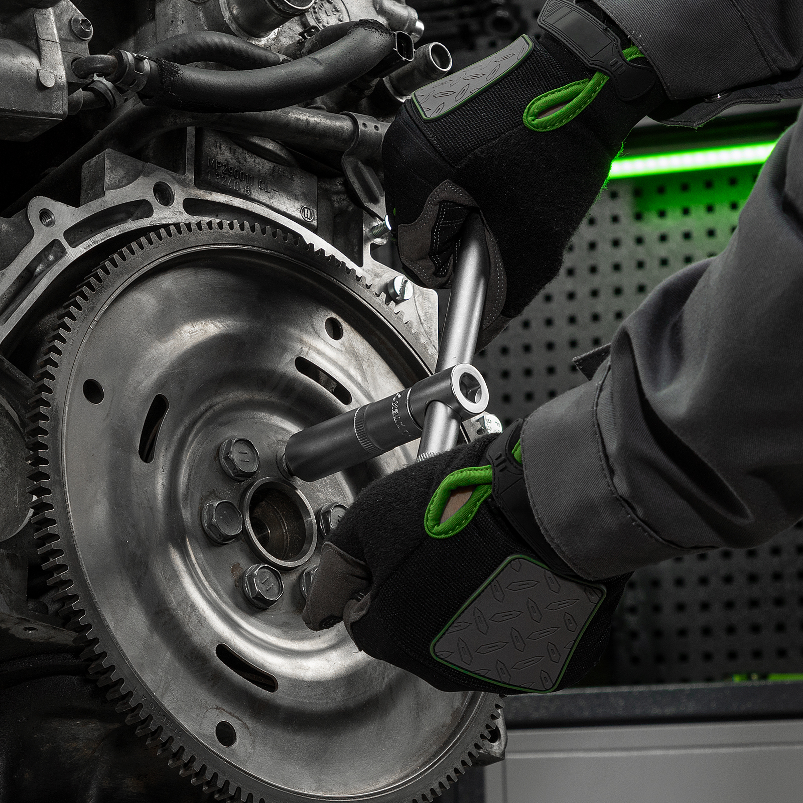 - Прочная фиксация — шариковый замок на трещотках, воротках, шарнирах и удлинителях надежно удерживает торцевые головки.
