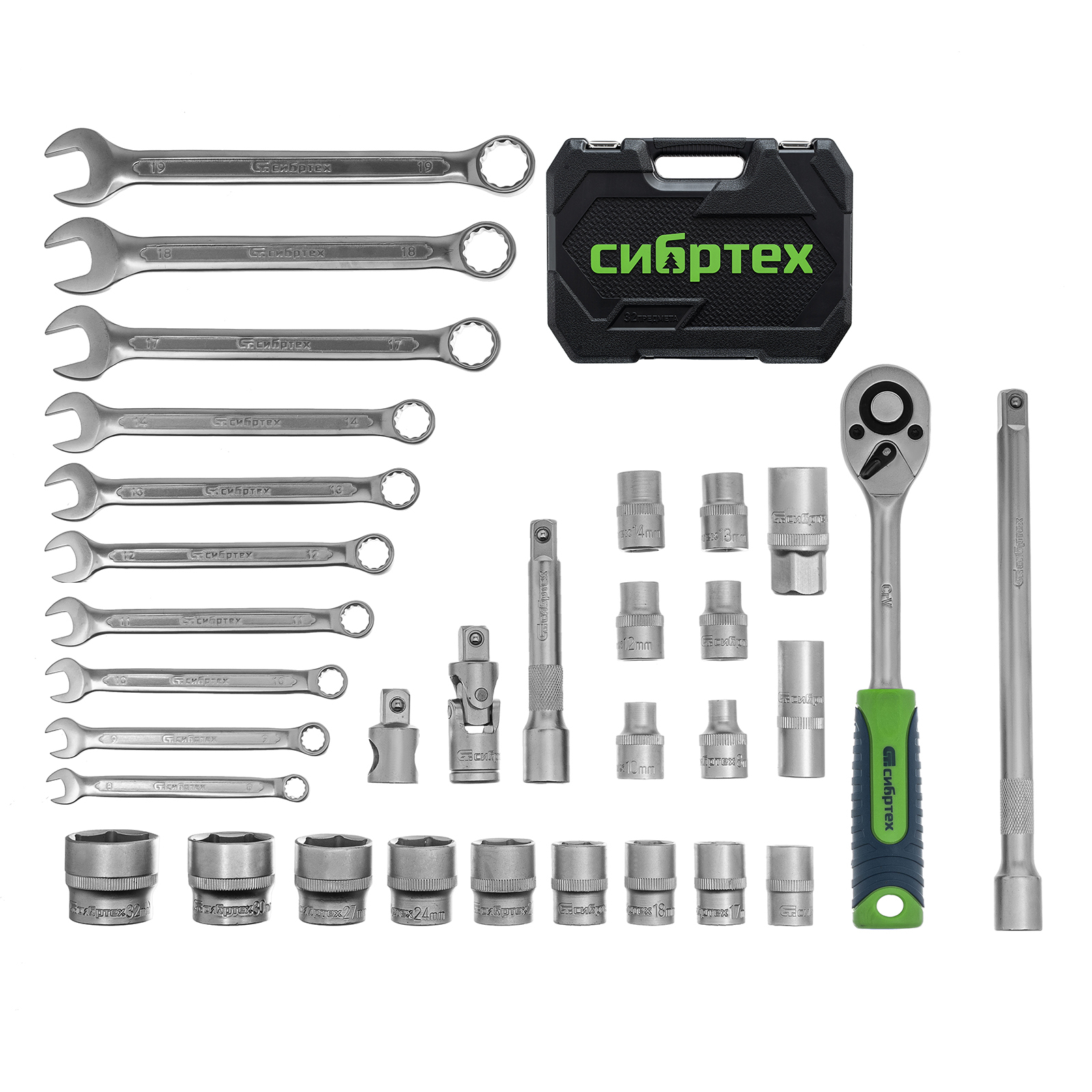 Набор инструментов, 1/2", пластиковый кейс, 32 предмета// Сибртех