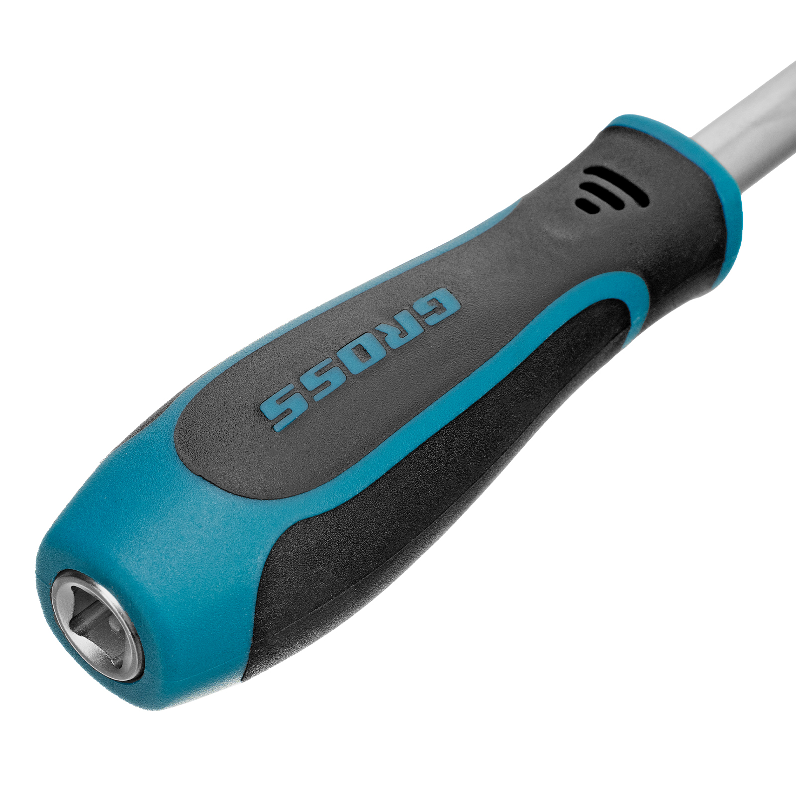 - Комфортный захват — благодаря антискользящим насечкам даже влажные или замасленные удлинители и насадки не выскальзывают из рук.