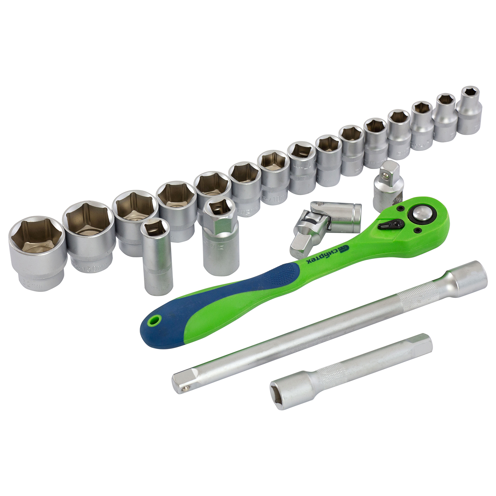 Набор инструментов Сибртех 13527, 1/2 дюйма, в пластиковом кейсе, состоит из 32 предметов, изготовленных из стали CrV-группы и предназначенных для закручивания и откручивания резьбовых крепежей. Имеющиеся в комплекте 2 удлинителя и кардан облегчают работу в труднодоступных местах. Набор будет полезен для ремонта автомобиля в гараже, пригодится также и в быту.