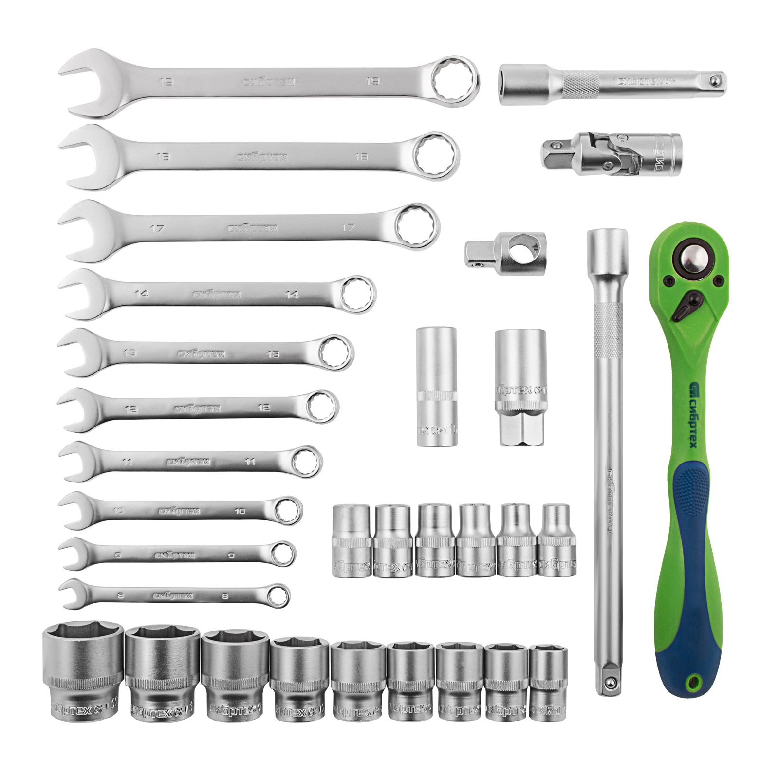 Набор инструментов 32 предмета, CrV, 1/2" Сибртех
