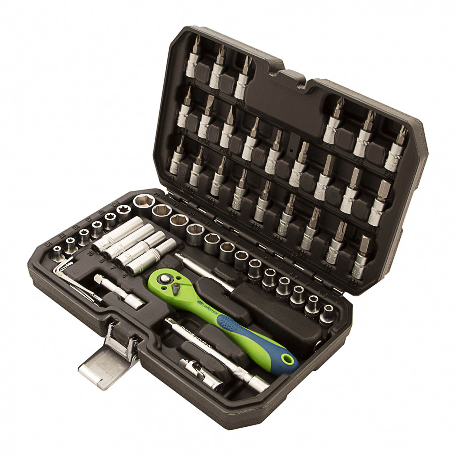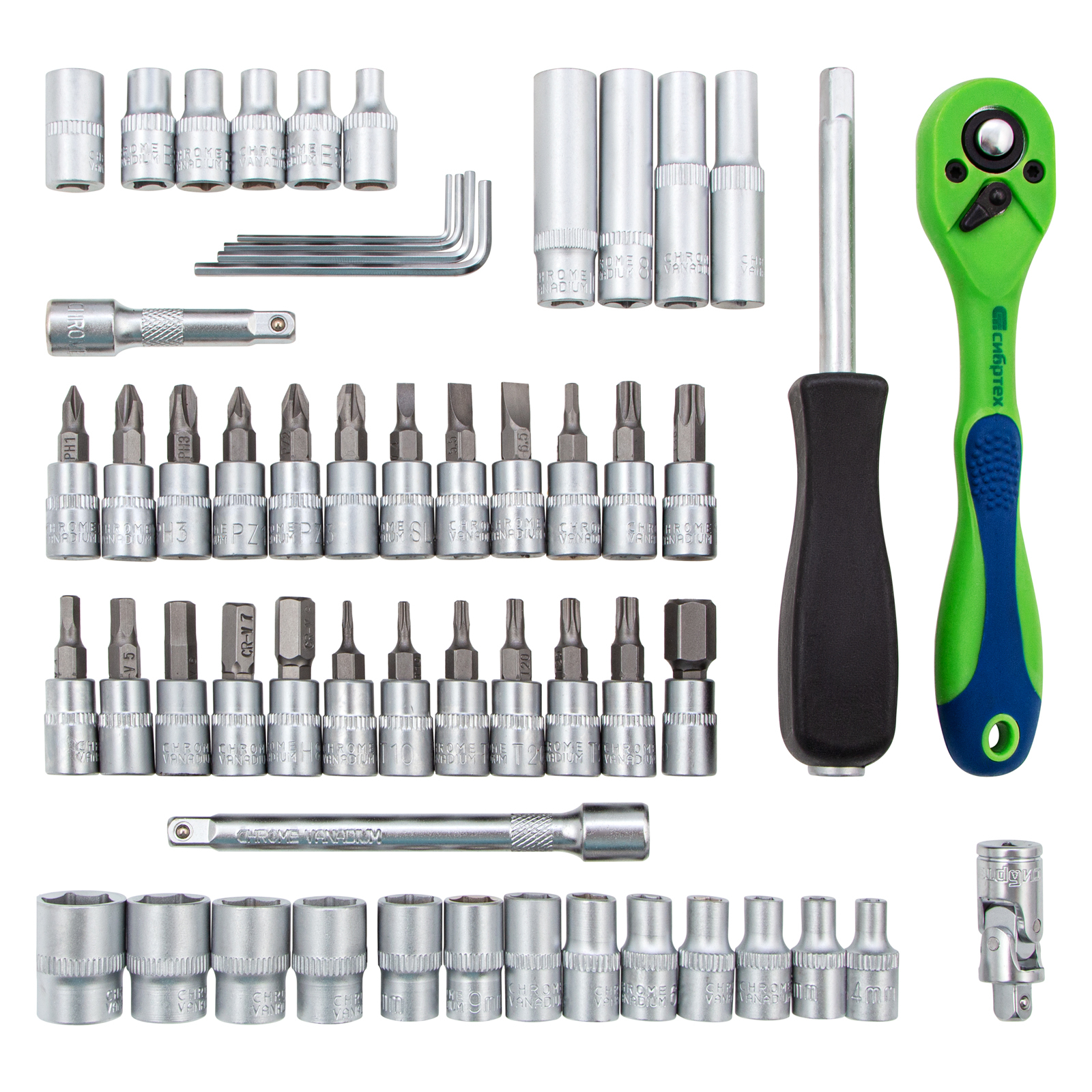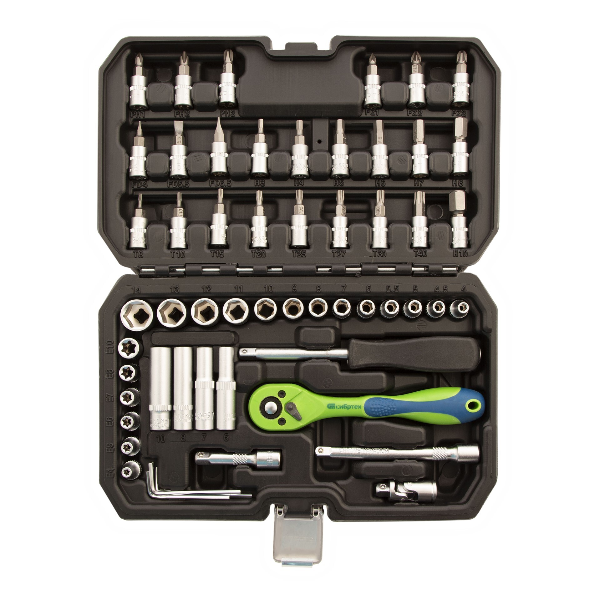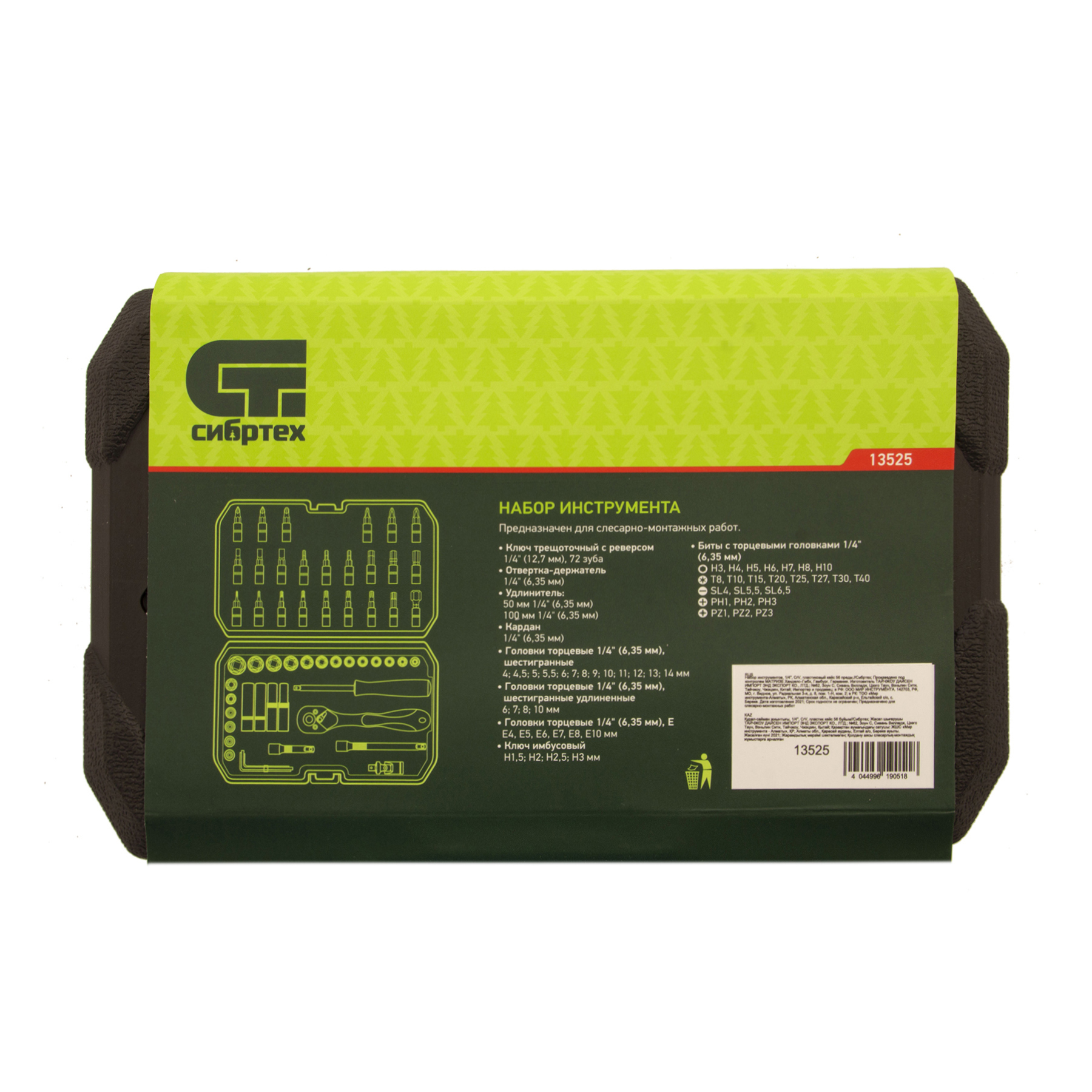 Набор инструментов 56 предметов, CrV, 1/4" Сибртех