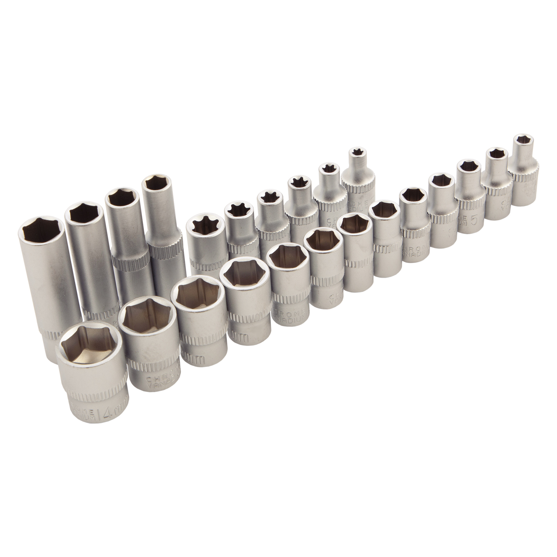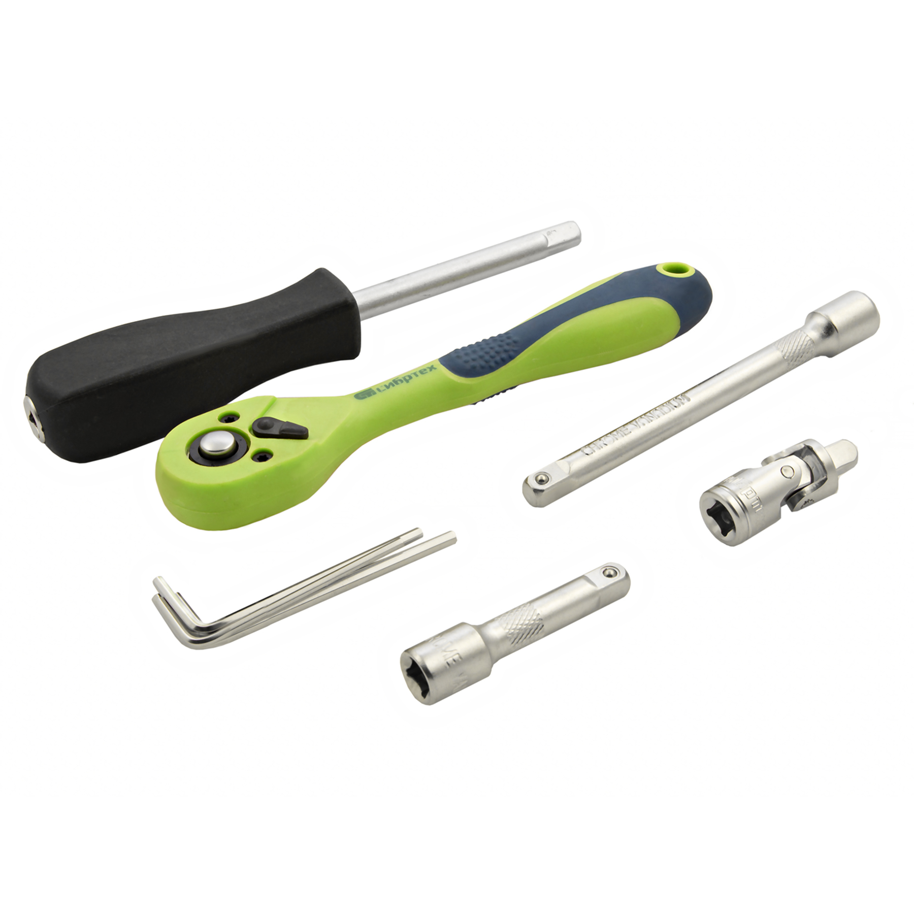 Набор инструментов Сибртех 13525, 1/4 дюйма, в пластиковом кейсе, состоит из 56 предметов, изготовленных из стали CrV-группы и предназначенных для закручивания и откручивания резьбовых крепежей. Имеющиеся в комплекте 2 удлинителя и кардан облегчают работу в труднодоступных местах. Набор будет полезен для ремонта автомобиля в гараже, пригодится также и в быту.