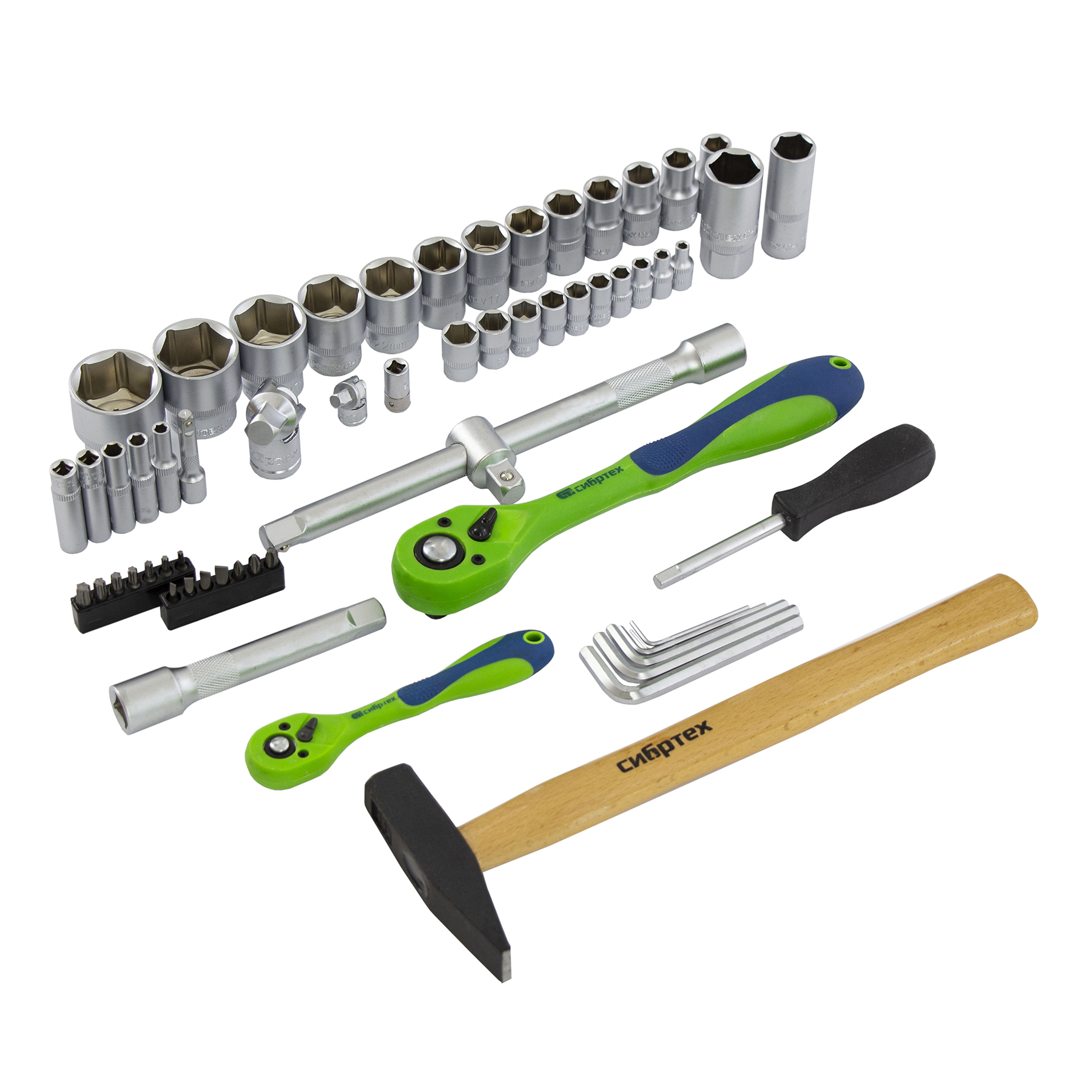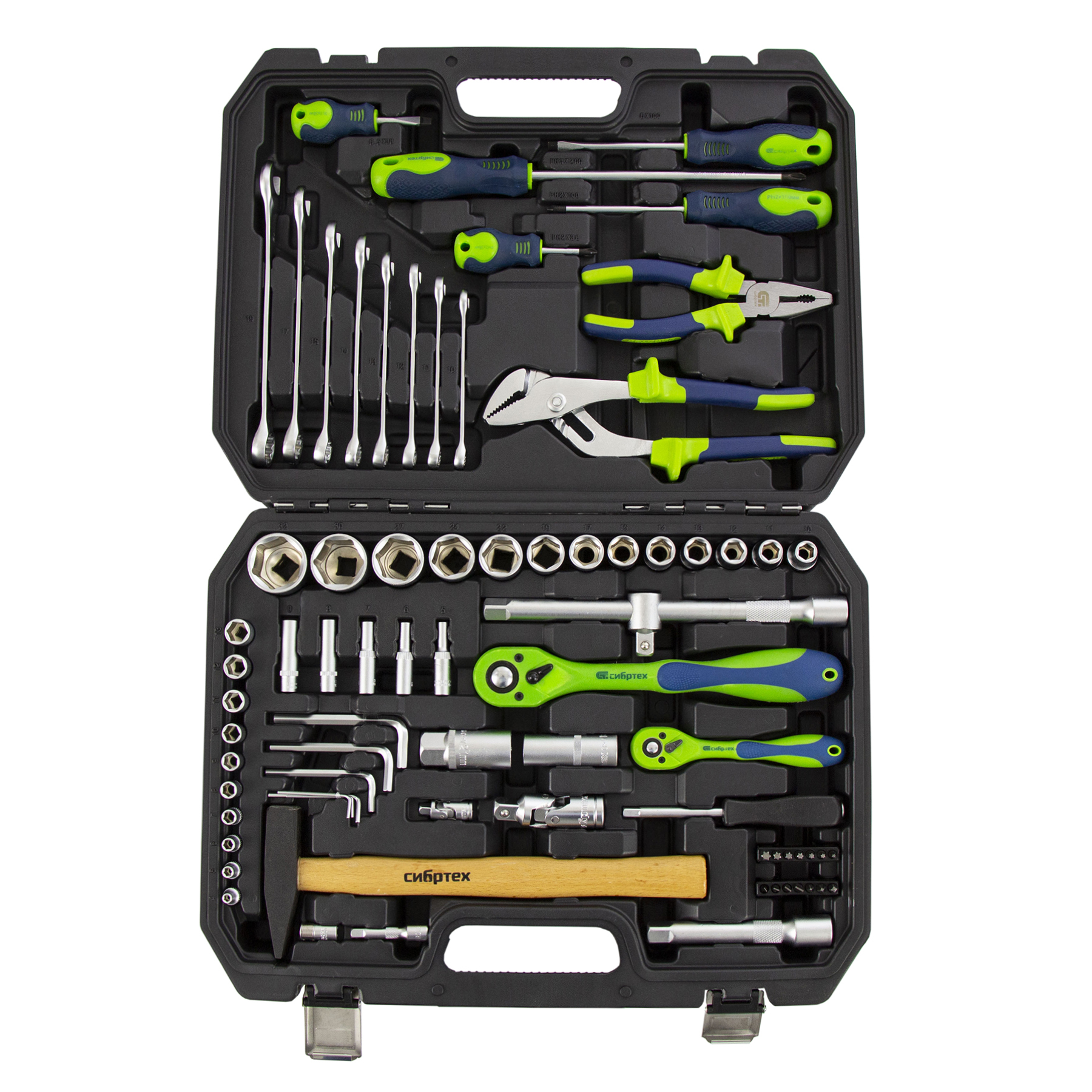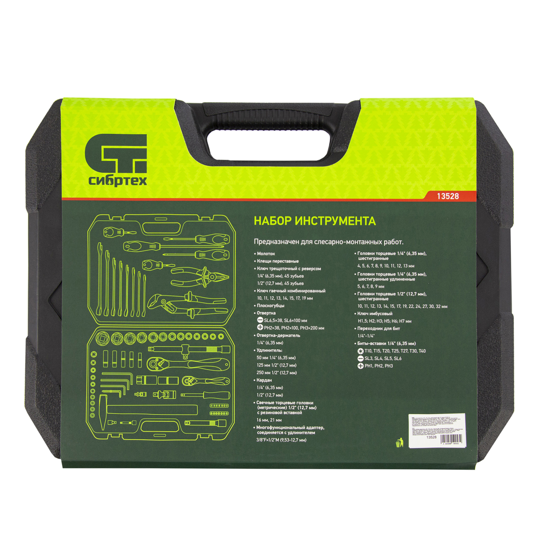 Набор инструментов 76 предметов CrV, 1/2", 1/4" Сибртех