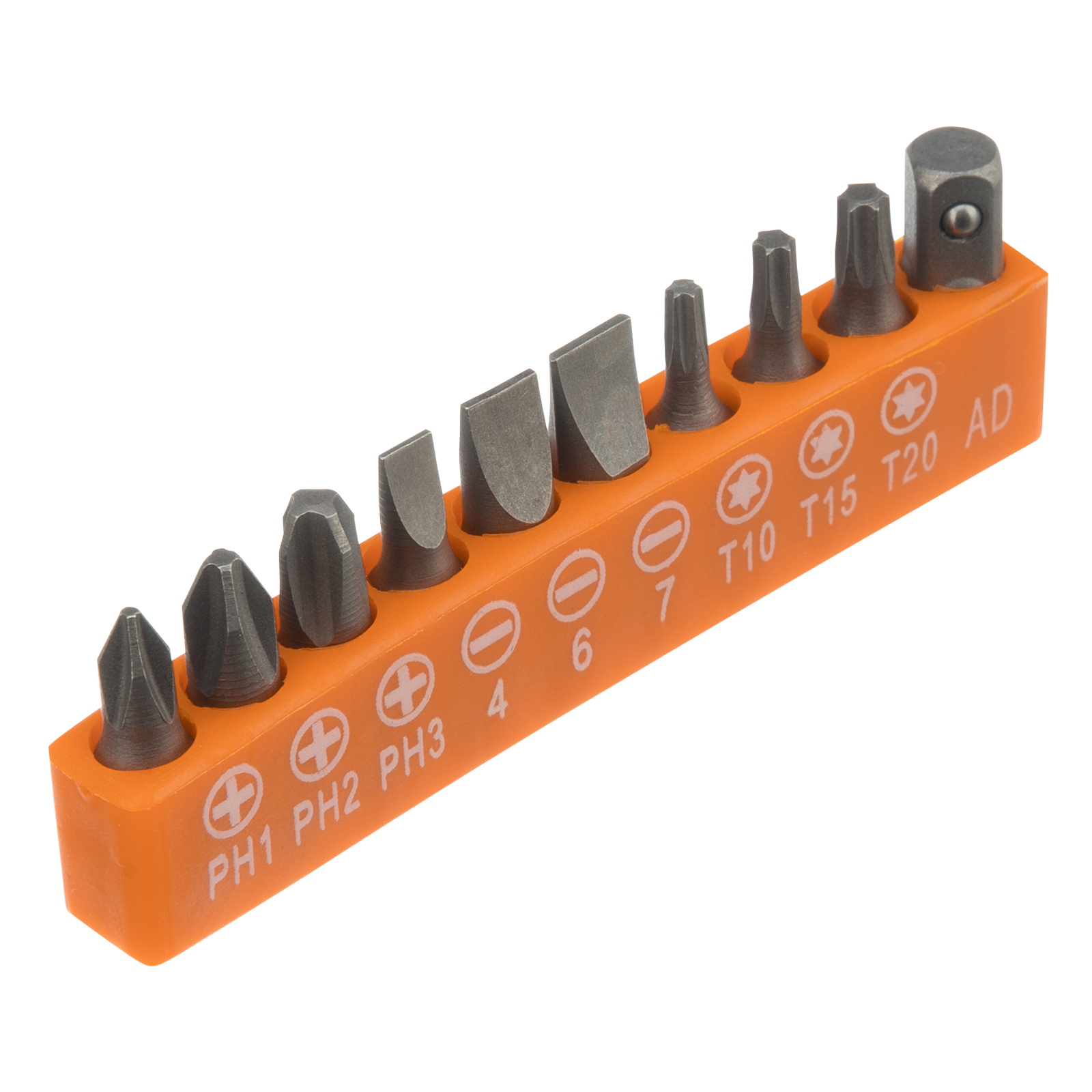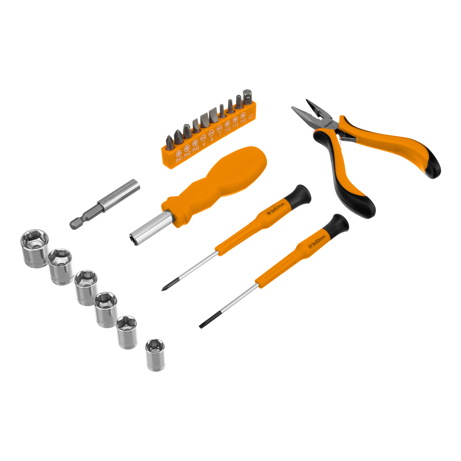Длинногубцы - 1 штГоловки 9, 10, 11, 12, 13, 14 - 6 штОтвертки для точных работ SL, PH - 2 штОтвертка для бит - 1 штАдаптер для бит - 1 штБиты PH, SL, T - 9 штДержатель для бит с магнитом - 1 штКейс - 1 штГоловки - 1 штПассатижи - 1 шт
