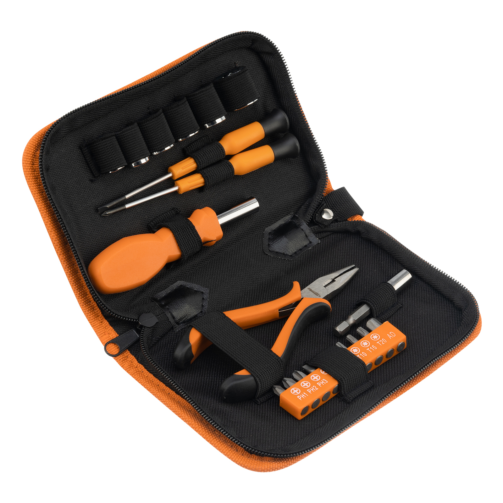 Набор слесарно-монтажный Sparta 13537 состоит из 21 предмета и применяется для проведения мелких ремонтных работ. Он включает в себя отвертки, в том числе часовые для точных работ, биты и торцевые головки, удлинитель для удобства работы в труднодоступных местах, длинногубцы. Набор пригодится в хозяйстве частным мастерам.