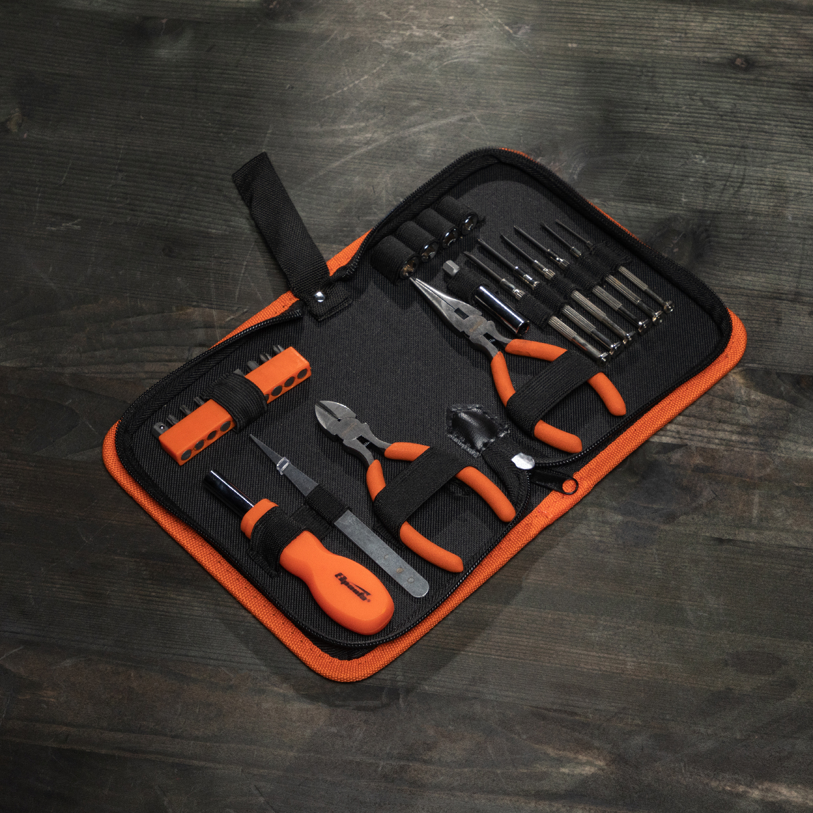 Длинногубцы - 1 штБокорезы - 1 штГоловки 7, 8, 9, 10 - 4 штОтвертки для точных работ SL, PH - 6 штОтвертка для бит - 1 штАдаптер для бит - 1 штБиты PH, SL, T - 9 штПинцет - 1 штДержатель для бит с магнитом - 1 штКейс - 1 штГоловки - 1 штПассатижи - 1 шт