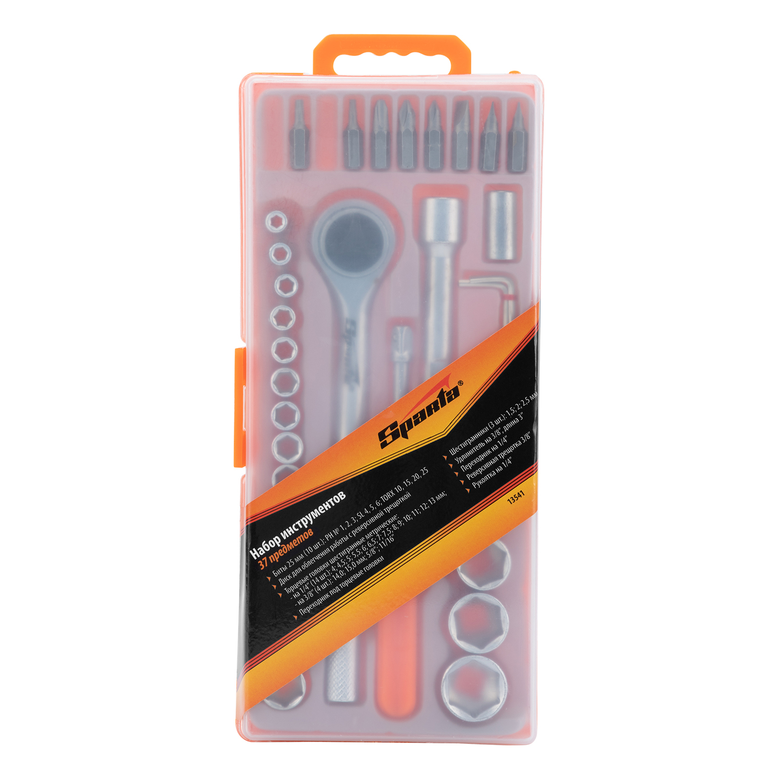 Набор Sparta 13541 содержит 37 предметов для проведения слесарно-монтажных работ. Он оптимально подходит для бытового применения, будет полезен начинающим мастерам. С помощью набора осуществляется монтаж/демонтаж резьбового крепежа.