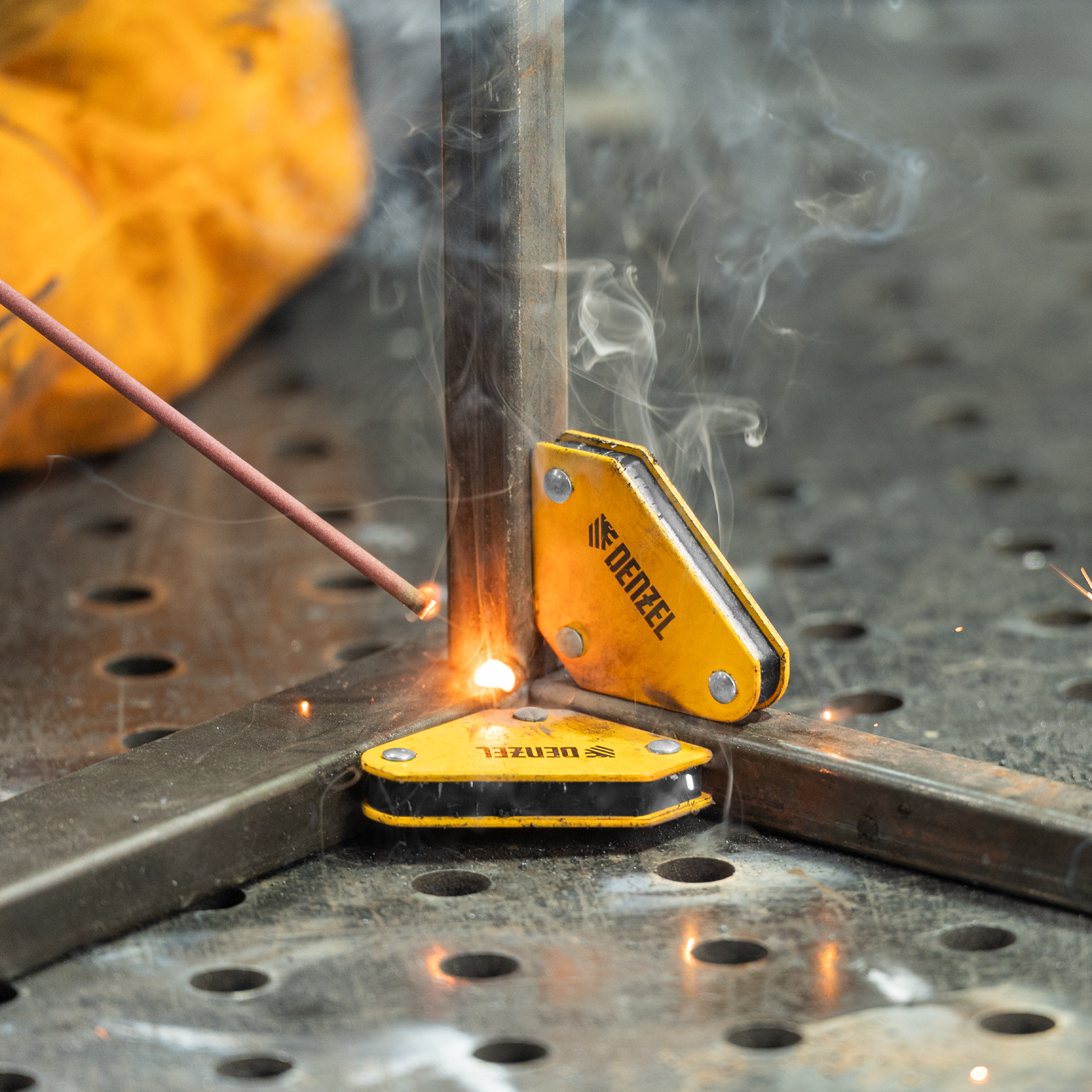 Набор из 2 магнитных сварочных фиксаторов и магнитной клеммы "масса" Denzel