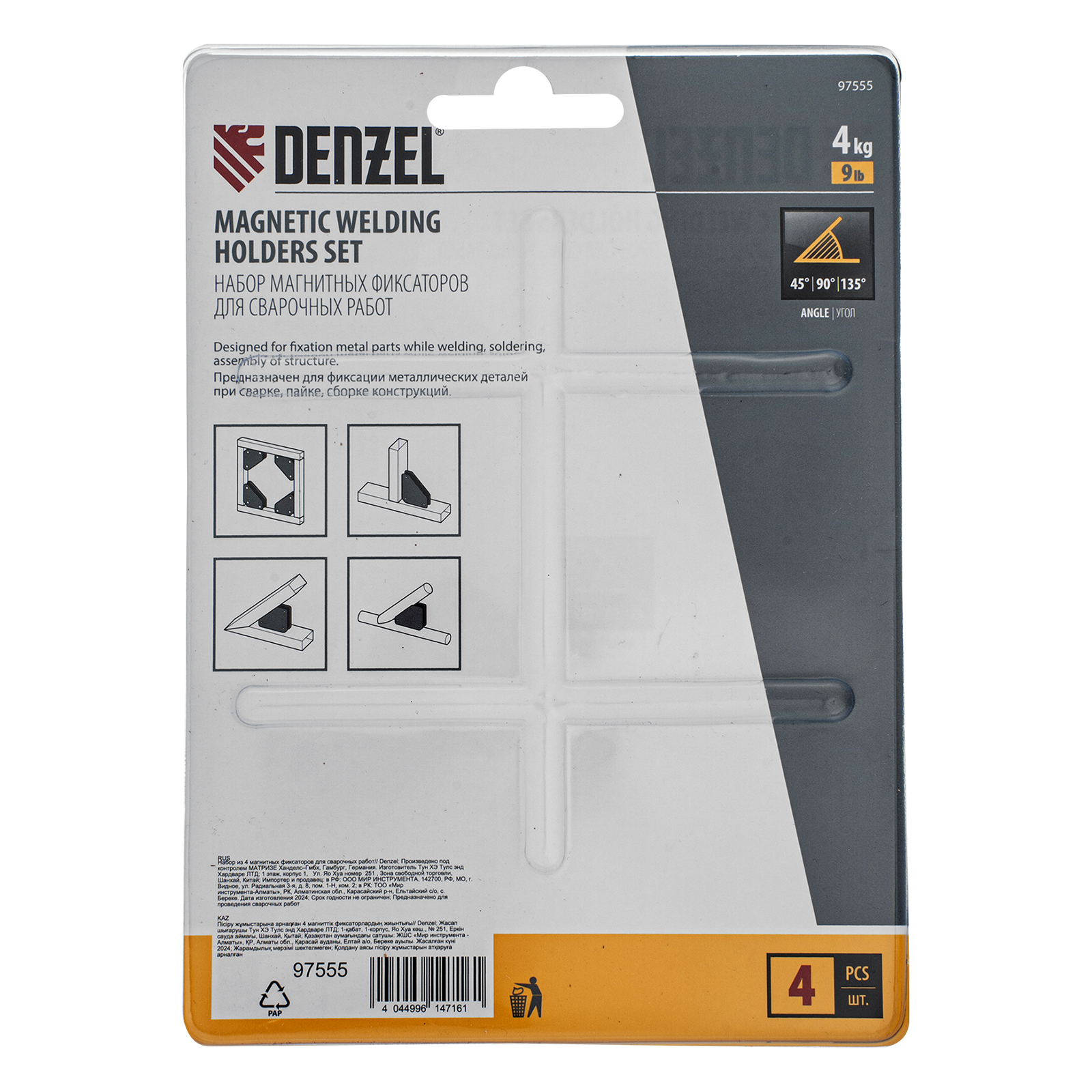Набор из 4 магнитных фиксаторов для сварочных работ Denzel
