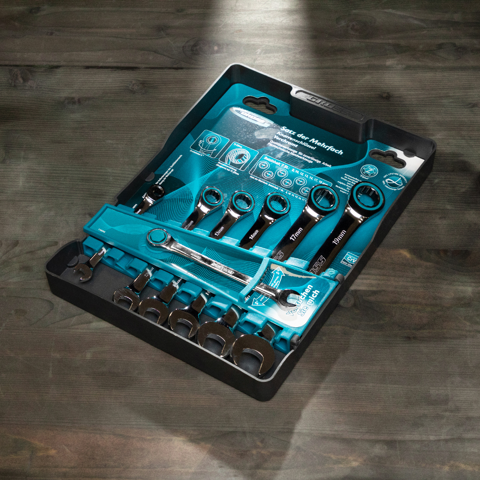 Набор ключей комбинированных с трещоткой, 8-19 мм, 7 шт, CrV Gross