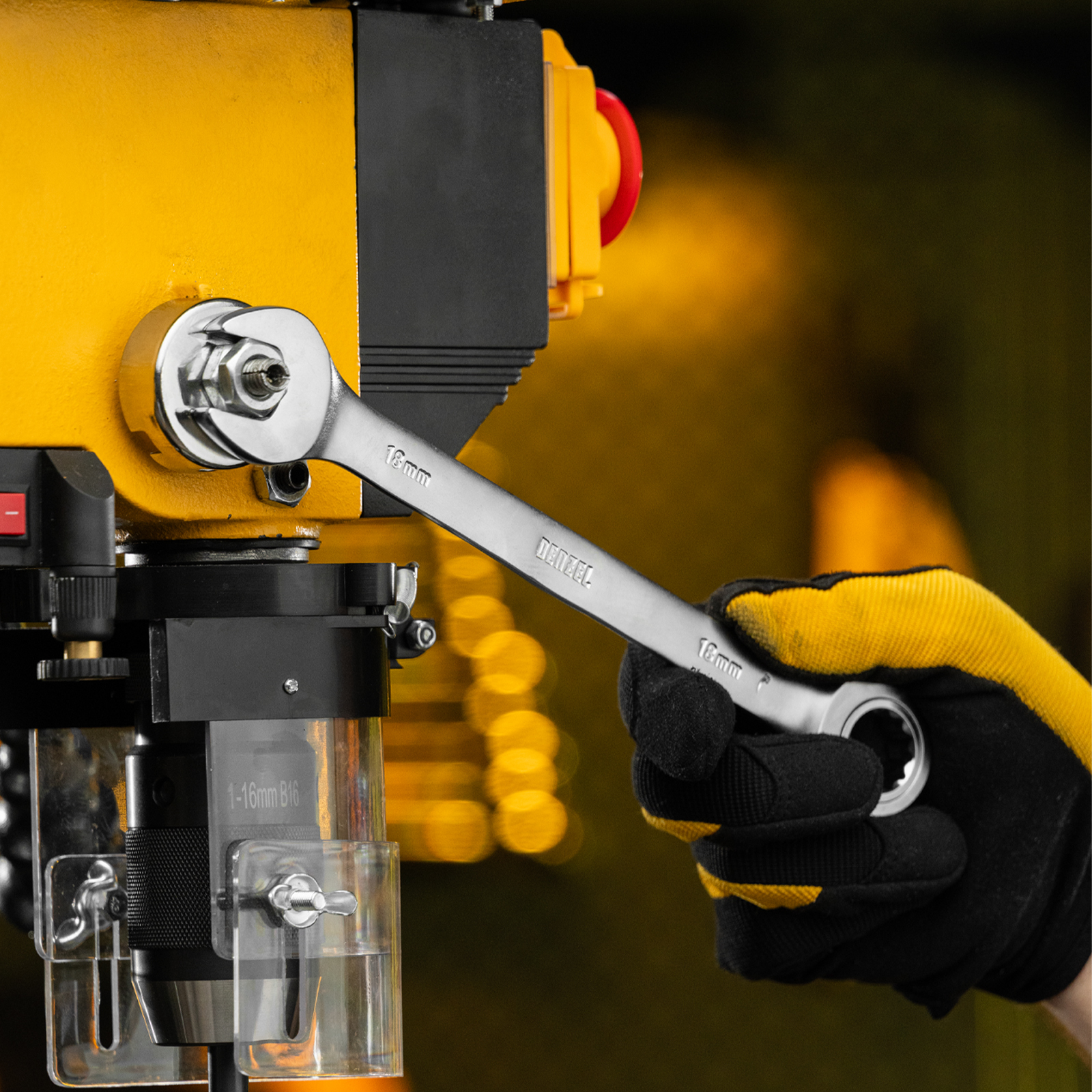 - Комфортная эксплуатация — храповой механизм с 90 зубьями обеспечивает максимально плавный ход, шаг трещотки составляет 4°.