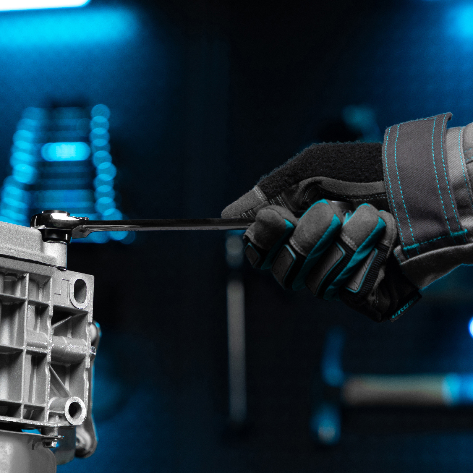- Высокий ресурс — твердость материала трещотки составляет 43-47 HRC, поэтому она устойчива к интенсивным нагрузкам.