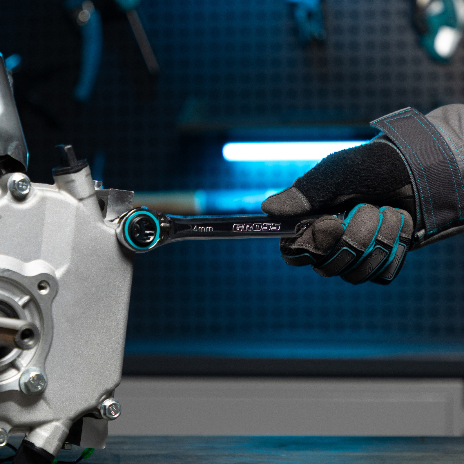 Набор ключей накидных с трещоткой, 8-19 мм, 2 шт, многоразмерные, реверсивные, CrV Gross