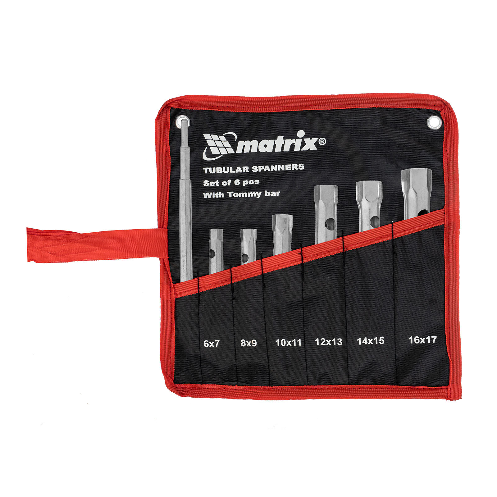 <p>Набор трубчатых торцевых ключей Matrix 13719 состоит из 7 предметов и будет полезен профессиональным и частным мастерам для работы с крепежом, имеющим шестигранный профиль. Трубчатая конструкция облегчает монтаж/демонтаж в труднодоступных местах. В комплекте имеется вороток для вращения ключей.</p><h2>Преимущества</h2><ul><li>Прочность — ключи выполнены из качественной углеродистой стали 45.</li><li>Коррозионная стойкость — хромоникелевое покрытие защищает инструменты от воздействия влаги.</li><li>Быстрый поиск нужного инструмента — в набор входит 6 ключей с четкой маркировкой с обозначением типоразмеров.</li><li>Удобное хранение и транспортировка — инструменты упакованы в сумку-скрутку с индивидуальными отделениями.</li></ul>