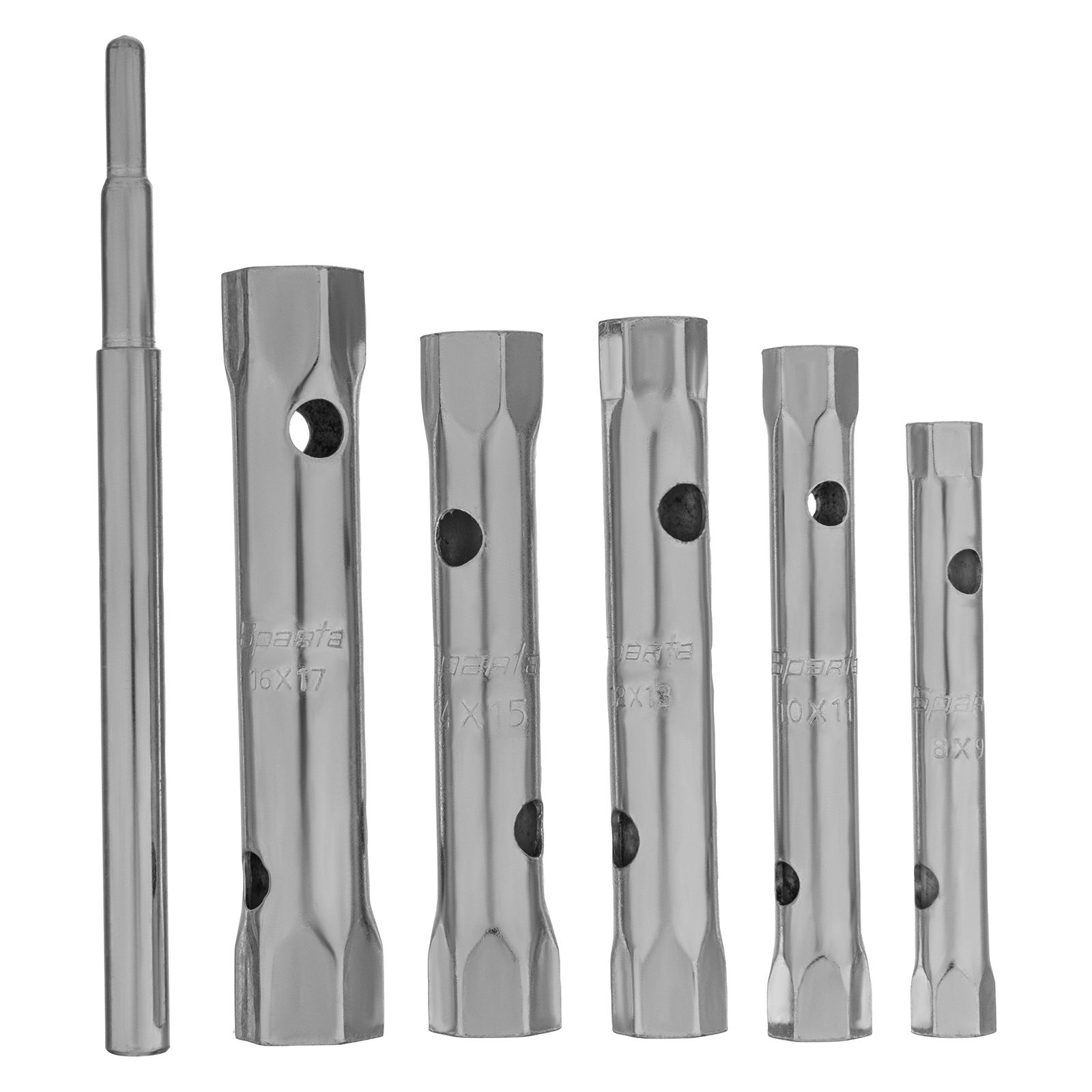 Набор ключей трубчатых торцевых, 8 х 17 мм, вороток, оцинкованные, 6 шт. Sparta