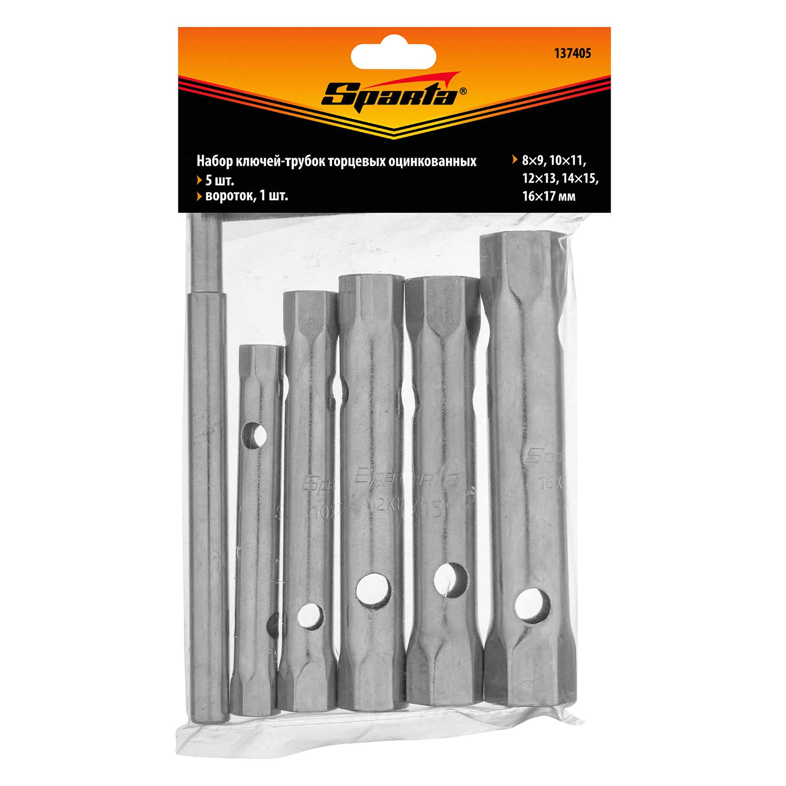 <p>Набор Sparta 137405 включает 6 предметов: 5 оцинкованных торцевых ключей-трубок размером 8 x 17 мм и вороток. Позволяет откручивать и закручивать крепежные элементы с шестигранным профилем, расположенные в труднодоступных местах. Входящий в комплект вороток облегчает вращение ключей.</p><h2>Преимущества</h2><ul><li>Ключи изготовлены из прочной и долговечной углеродистой стали 45 твердостью 41 HRC.</li><li>Инструменты оцинкованы для надежной защиты от коррозии.</li><li>Четкая маркировка позволяет быстро подобрать ключ нужного размера.</li></ul>