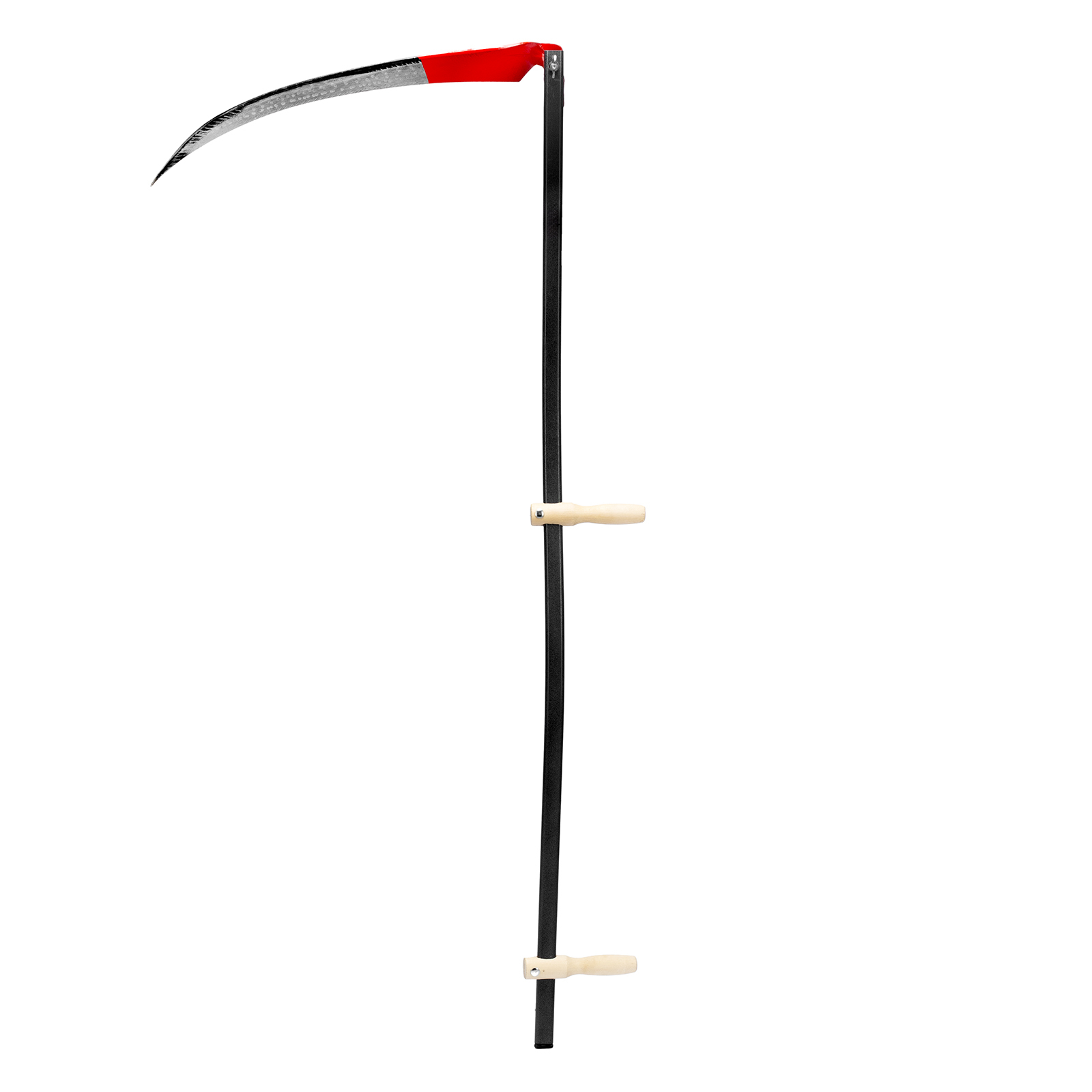 - Комфорт при работе — косовище имеет эргономичную изогнутую форму, а деревянная рукоятка удобно ложится в руку.