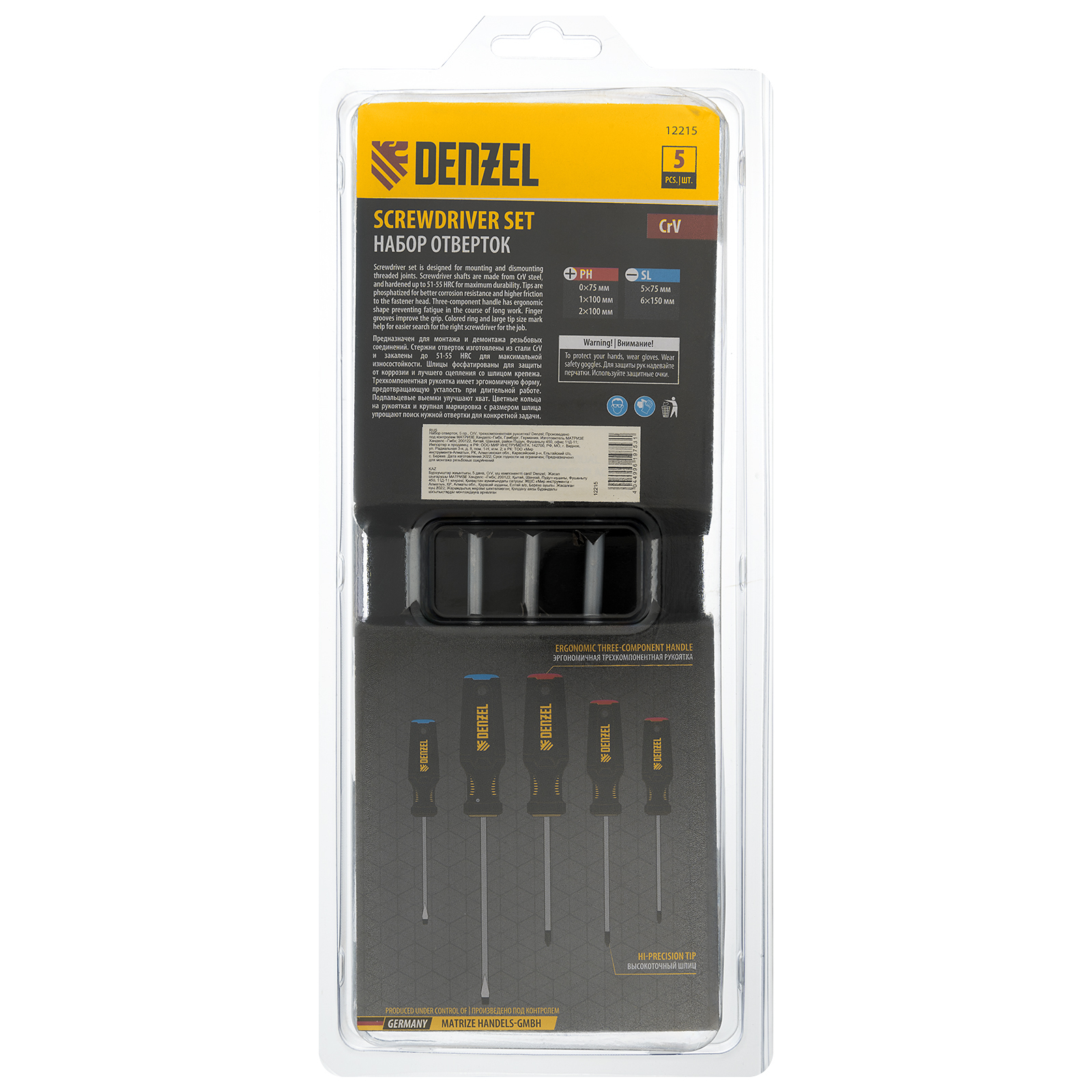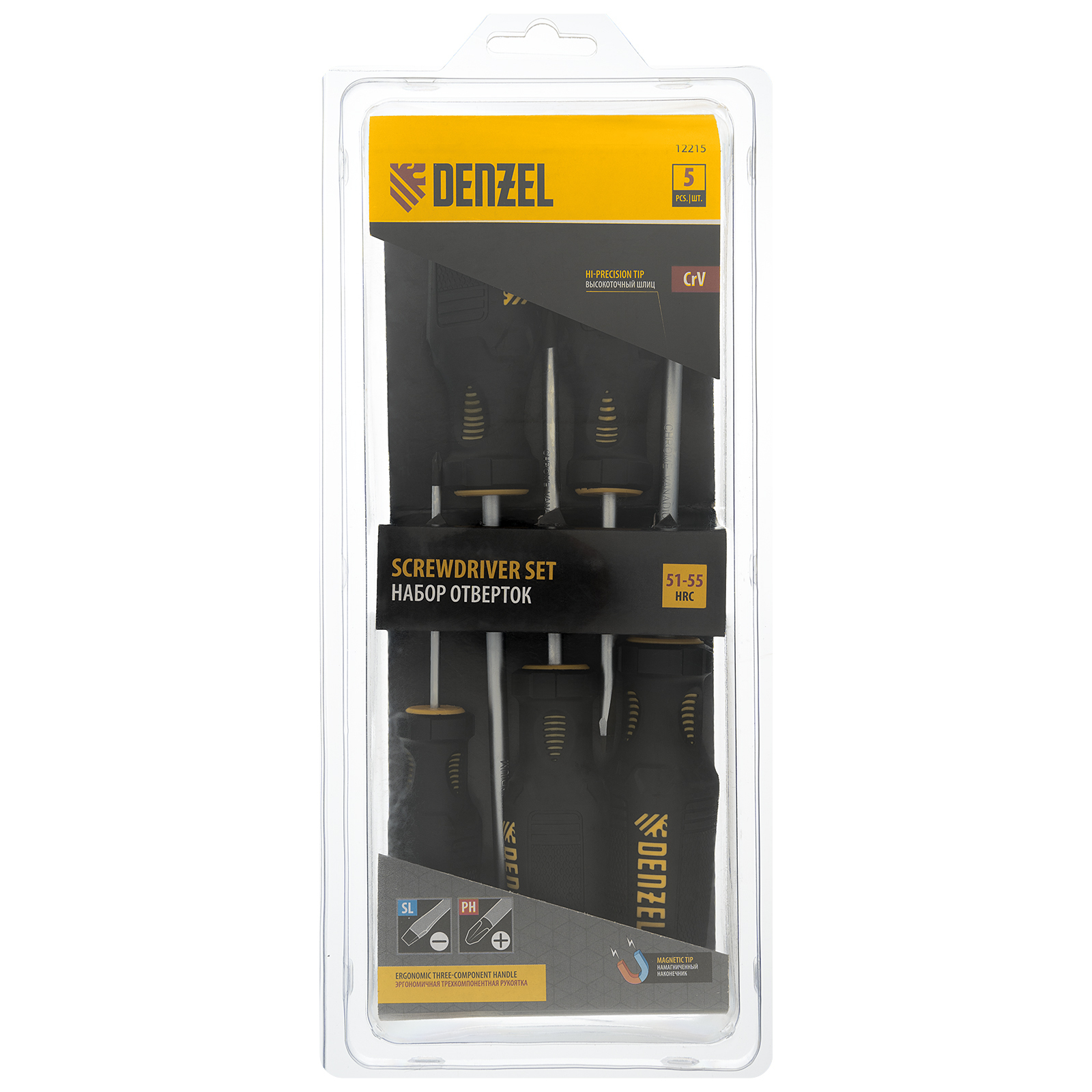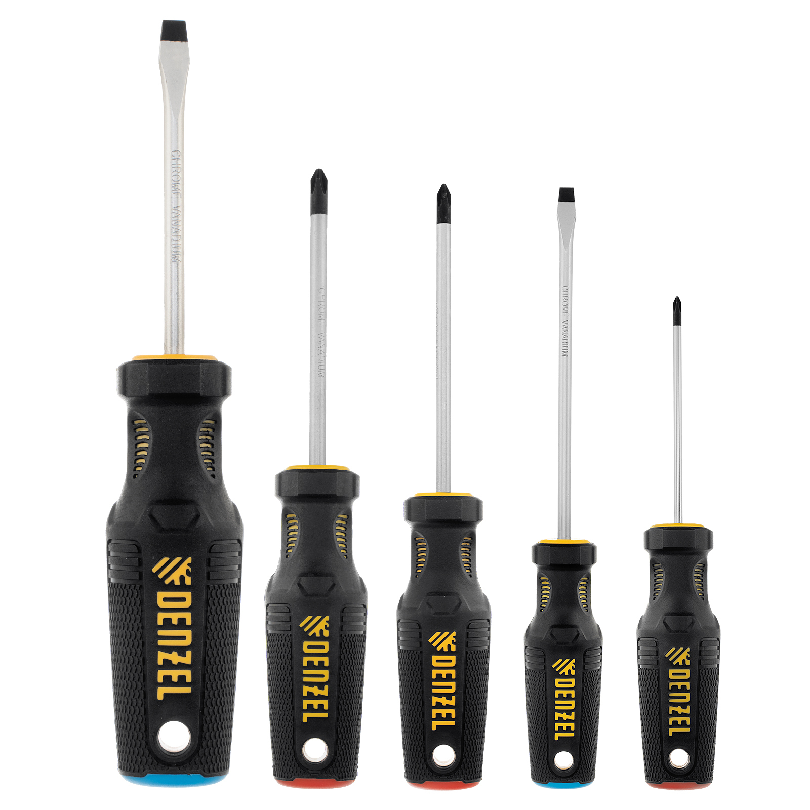 Набор отверток, 5 пр., CrV, трехкомпонентная рукоятка Denzel