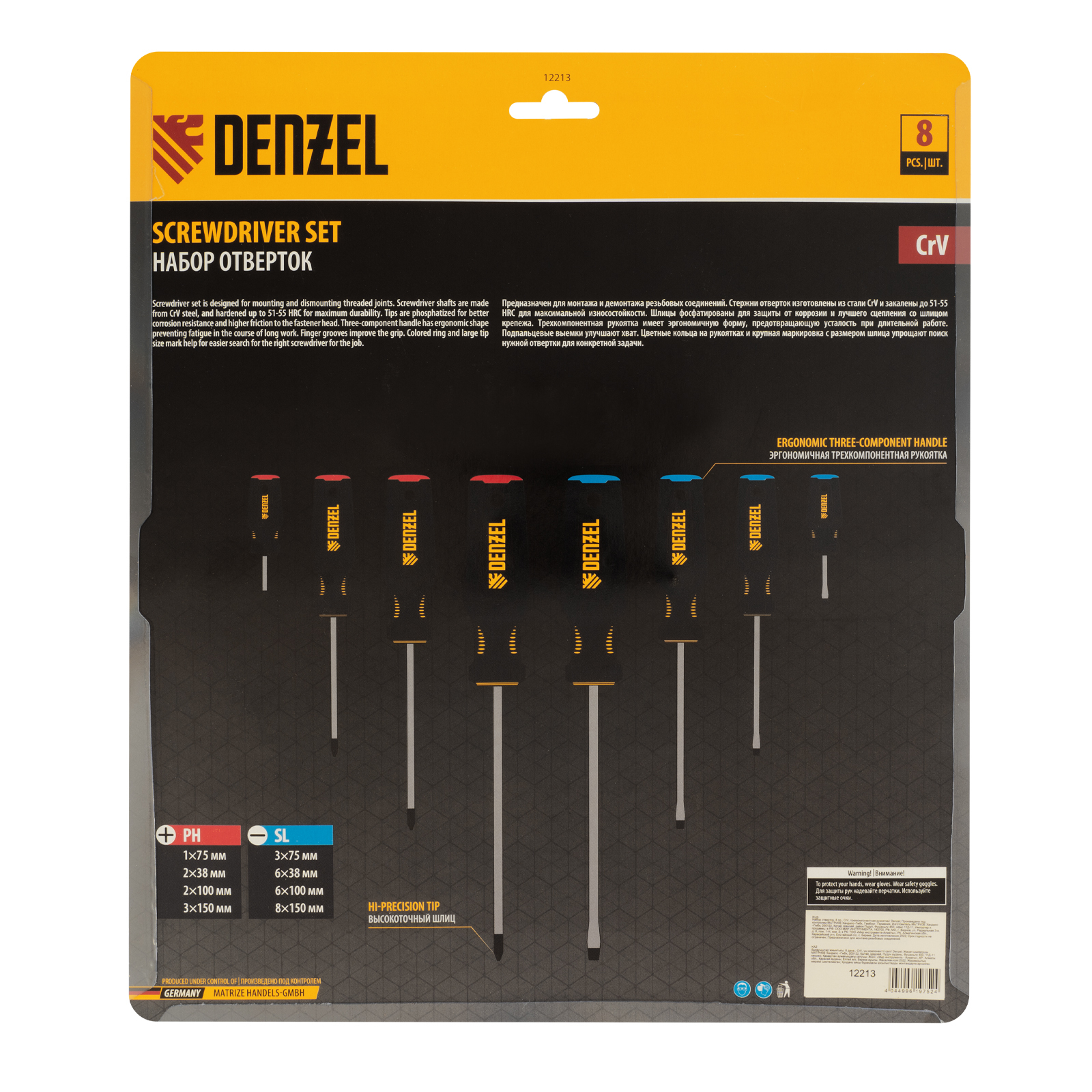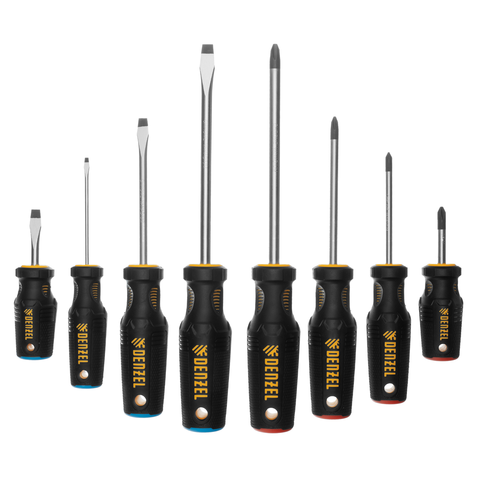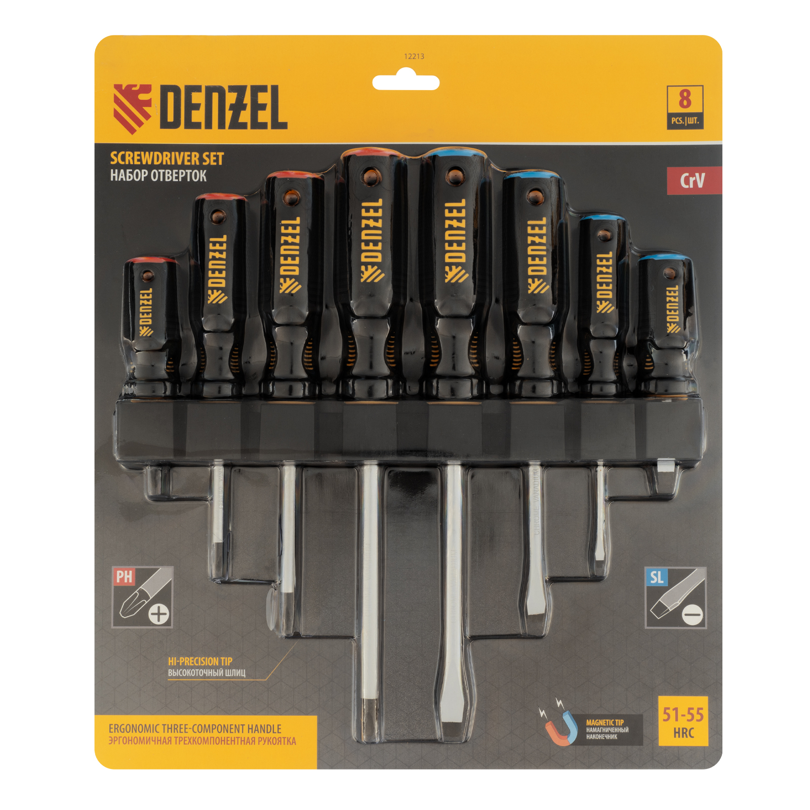Набор отверток, 8 пр., CrV, трехкомпонентная рукоятка Denzel