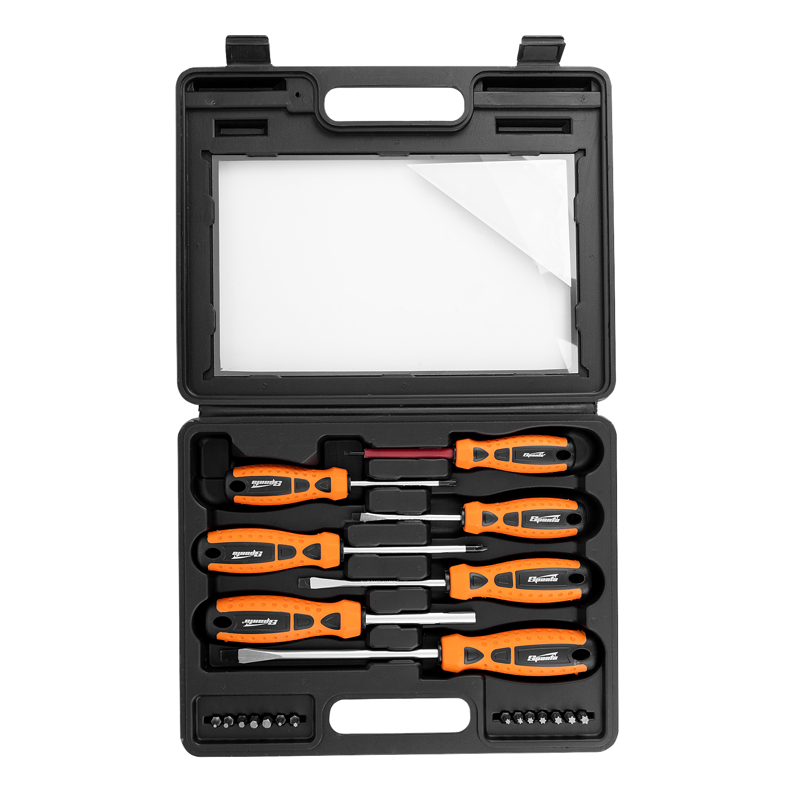 Набор Sparta 13309 включает в себя 21 предмет: отвертки с двухкомпонентными рукоятками и биты длиной 25 мм. Станет недорогим и практичным решением при проведении бытовых ремонтных и монтажных работ. Комплект включает в себя отвертки с крестовым и минусовым шлицем для монтажа/демонтажа крепежных элементов типа PH и SL соответственно. А отвертка-держатель и сменные биты позволяют работать с винтами типа HEX и TORX.