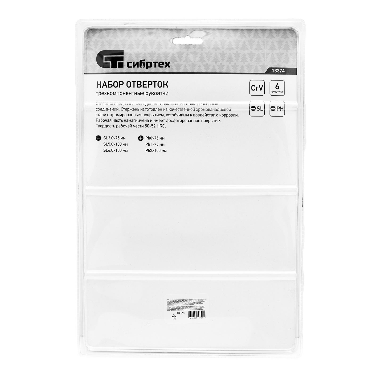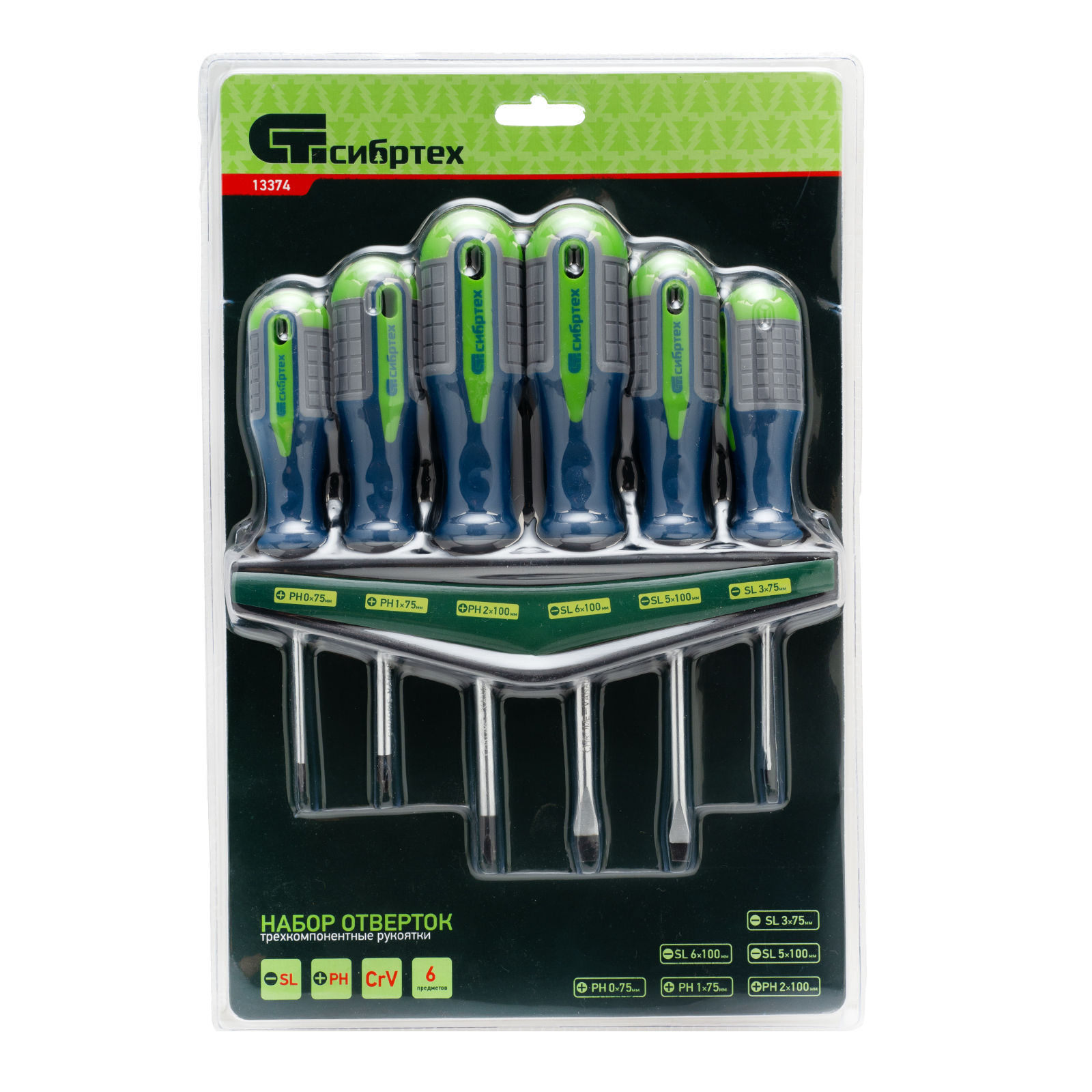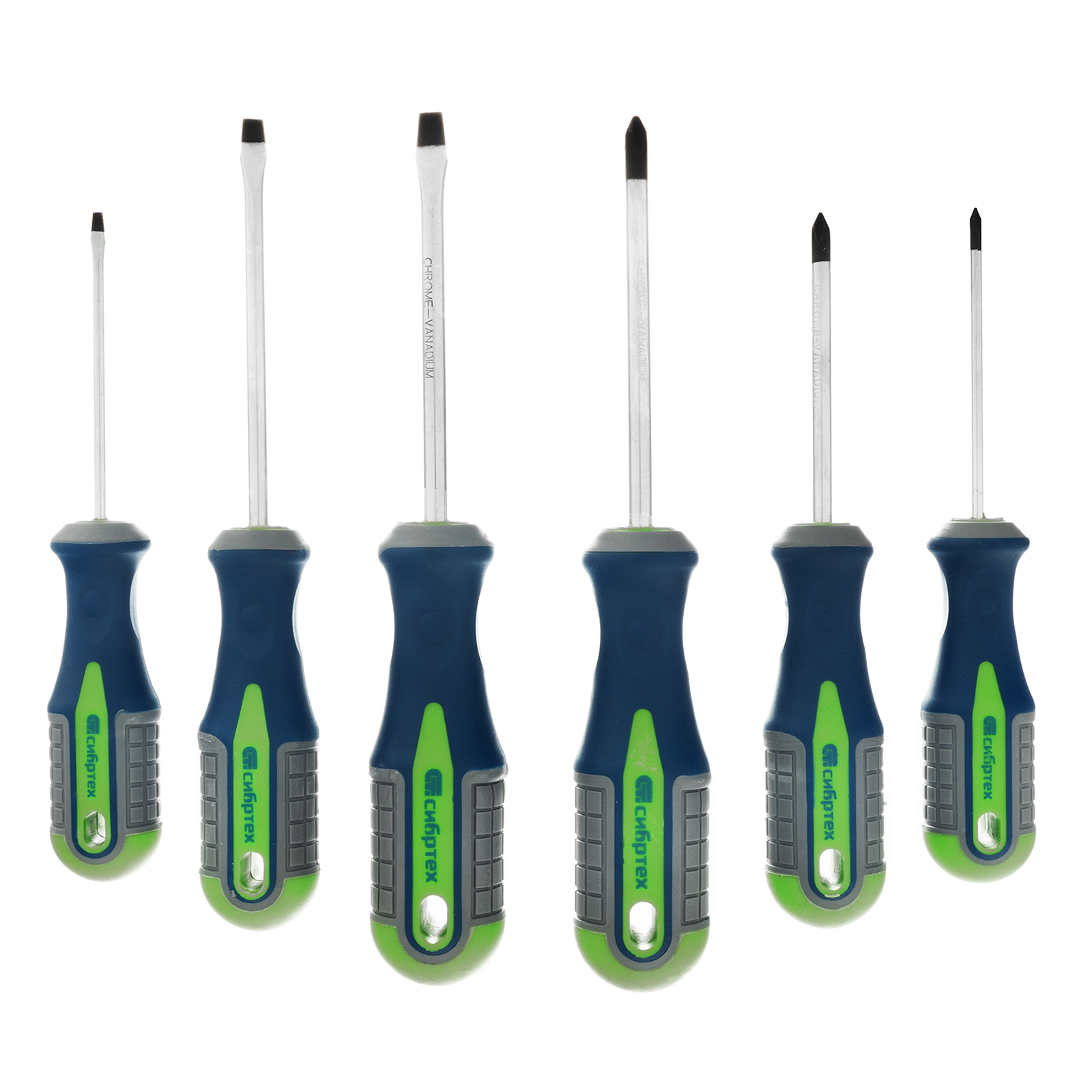 Набор отверток, CrV, трехкомпонентные рукоятки, 6 предметов Сибртех