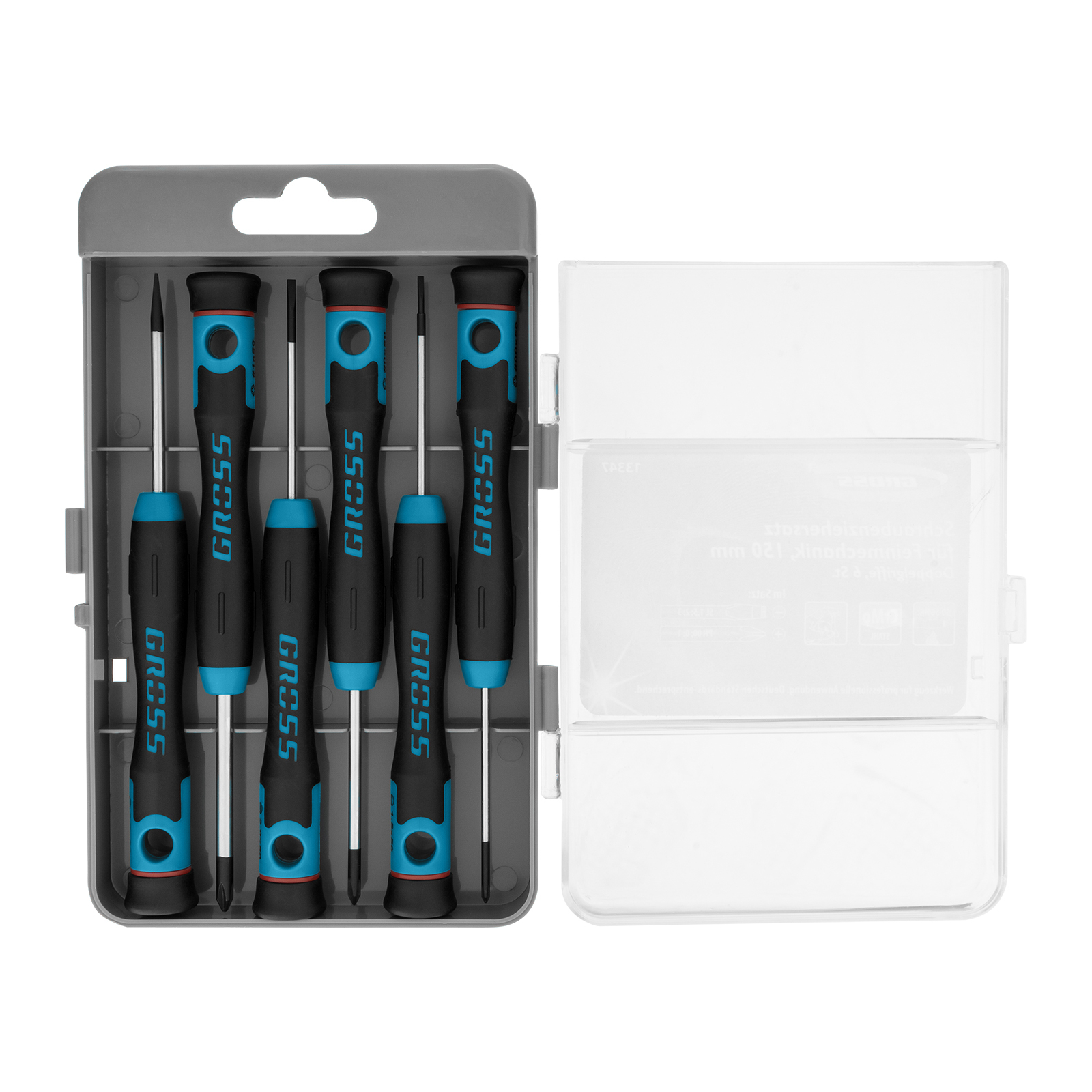 Набор отверток для точной механики, CrMo, двухкомпонентные рукоятки, 6 шт, пластиковый бокс Gross