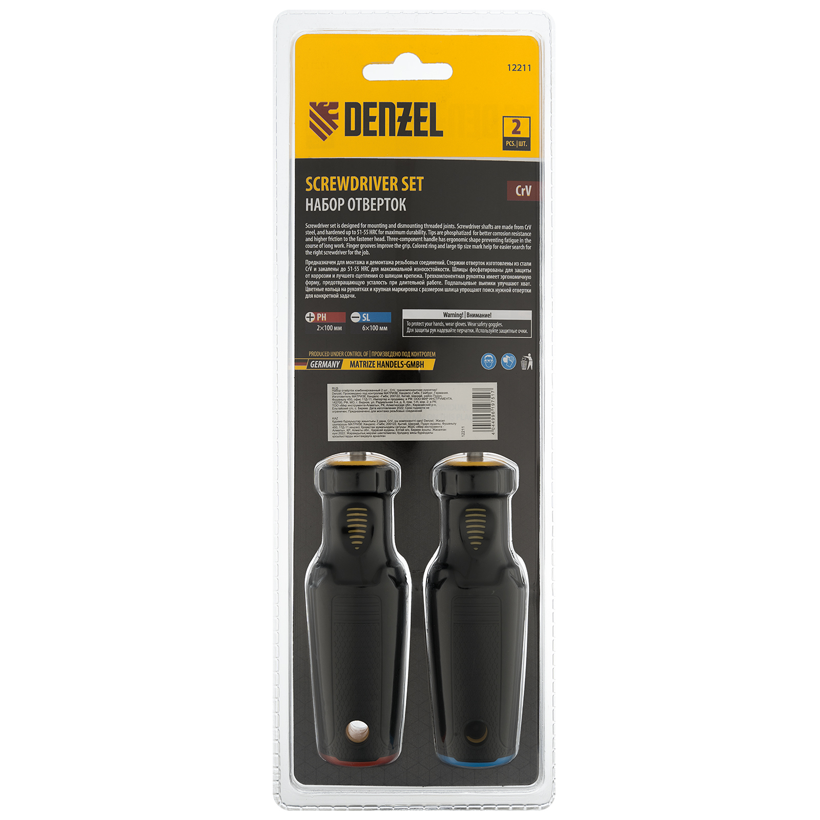 Набор отвёрток комбинированный 2 шт., CrV, трехкомпонентная рукоятка Denzel