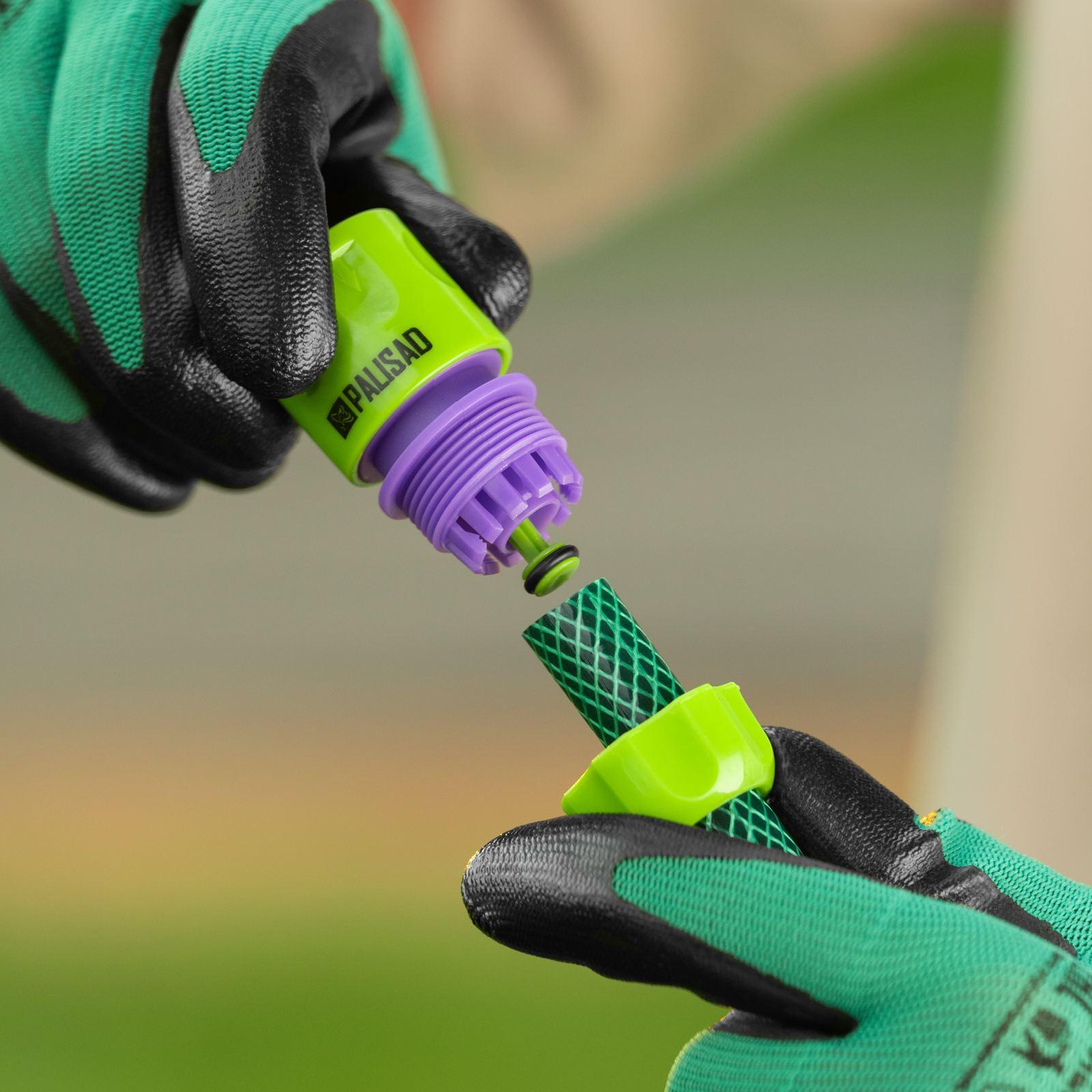 - Универсальность — коннекторы, адаптер и пистолет-распылитель совместимы с элементами всех поливочных систем ТМ Palisad.