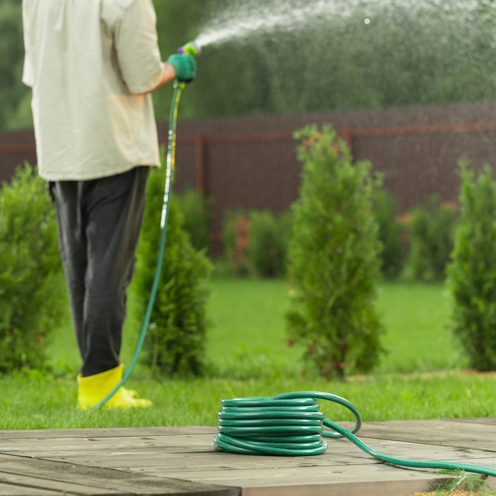 - Выбор оптимального режима полива — пистолет-распылитель позволяет регулировать мощность и тип струи.