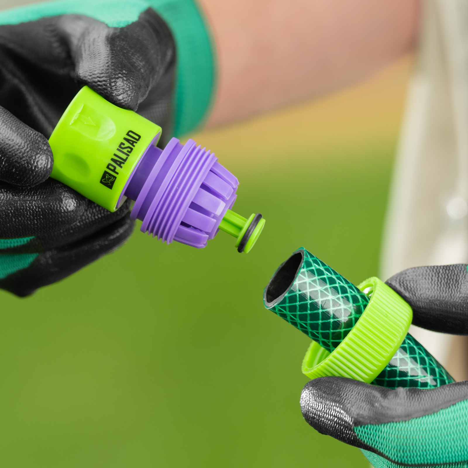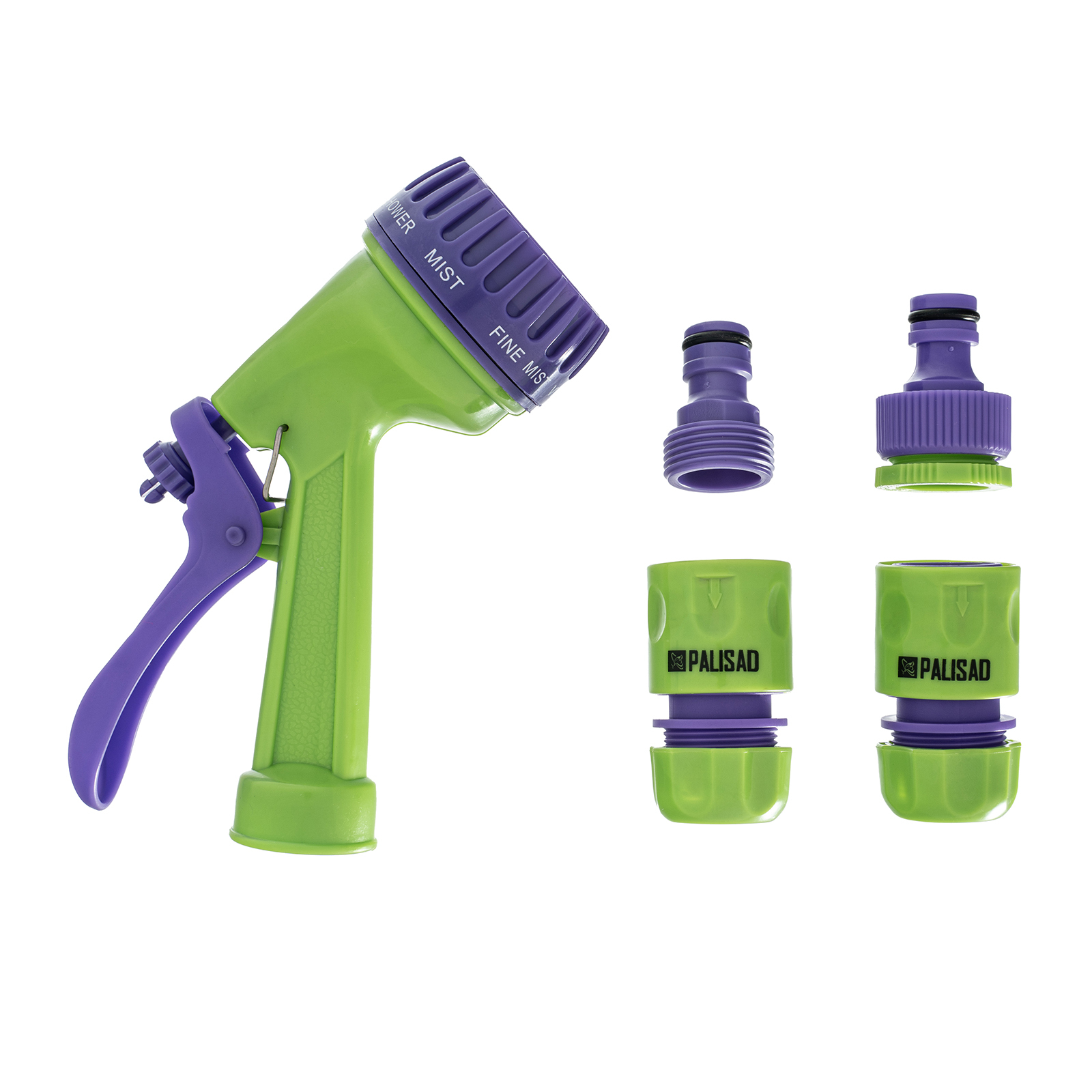 - Универсальность — коннекторы, адаптер и пистолет-распылитель совместимы с элементами всех поливочных систем ТМ Palisad.