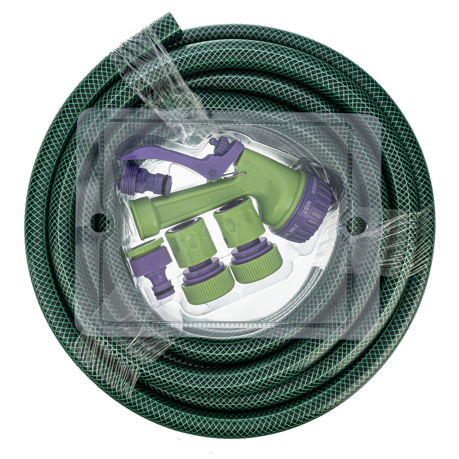 - Прочность и долговечность — шланг изготовлен из высококачественного ПВХ, устойчивого к ультрафиолету, дополнительные элементы набора выполнены из ABS-пластика и не боятся коррозии.