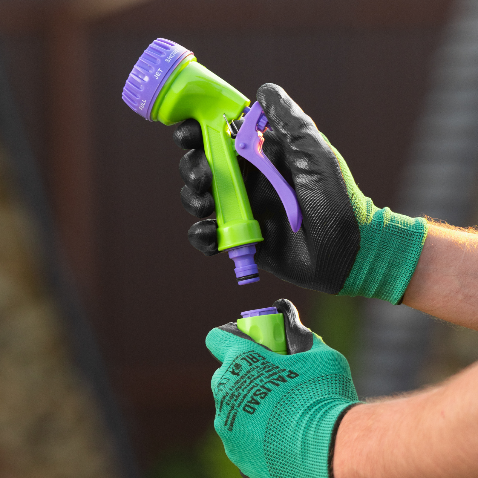 - Выбор оптимального режима полива — пистолет-распылитель позволяет регулировать мощность и тип струи.