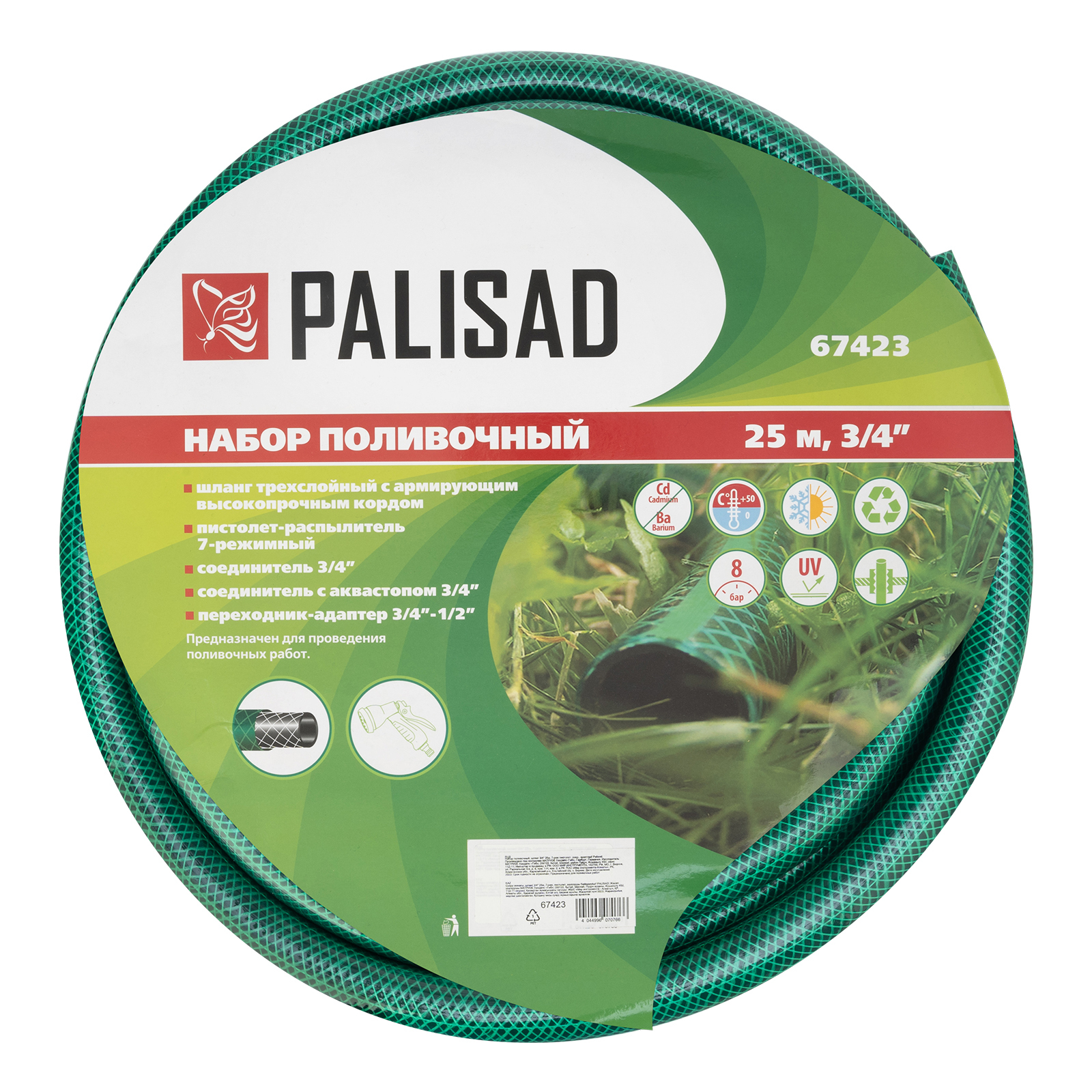 Набор поливочный, шланг 3/4", 25 м, 7 режимов пистолет, соединитель, адаптер Palisad