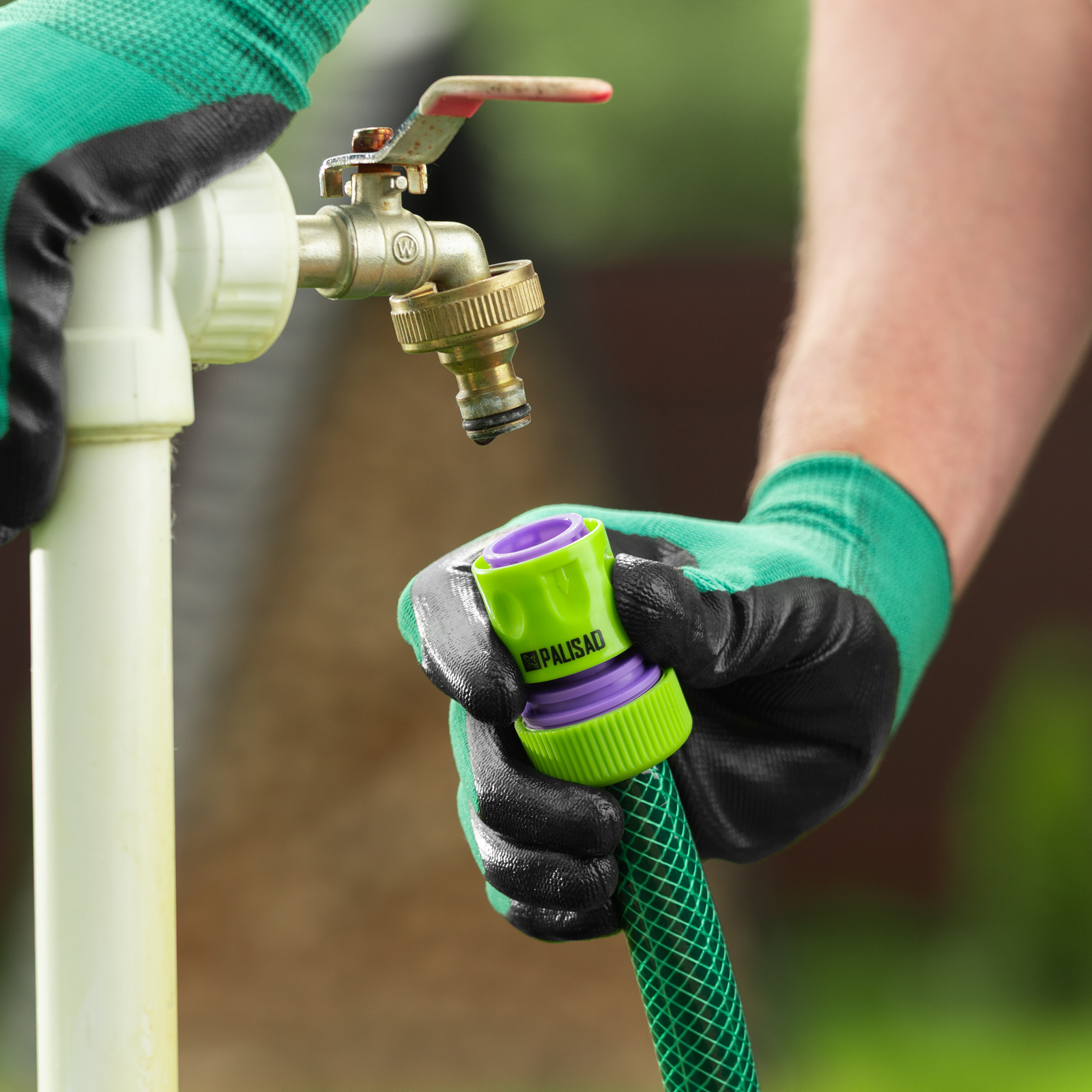 - Универсальность — коннекторы, адаптер и пистолет-распылитель совместимы с элементами всех поливочных систем ТМ Palisad.