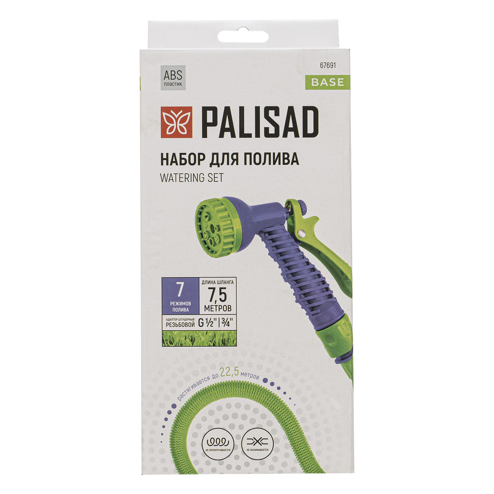 Набор поливочный, шланг 7,5-22,5 м, пистолет 7 реж., с быстросъемным соединителем Palisad