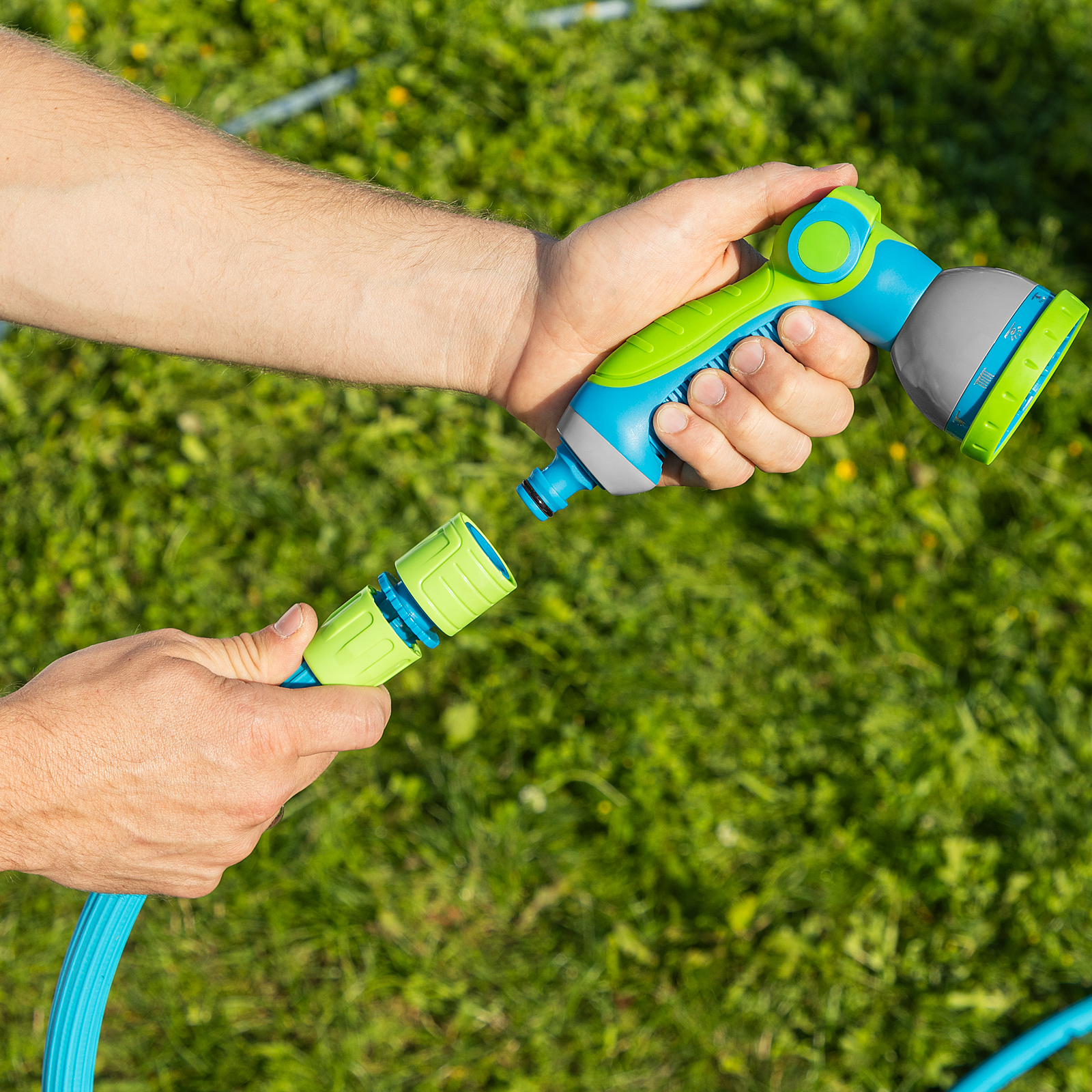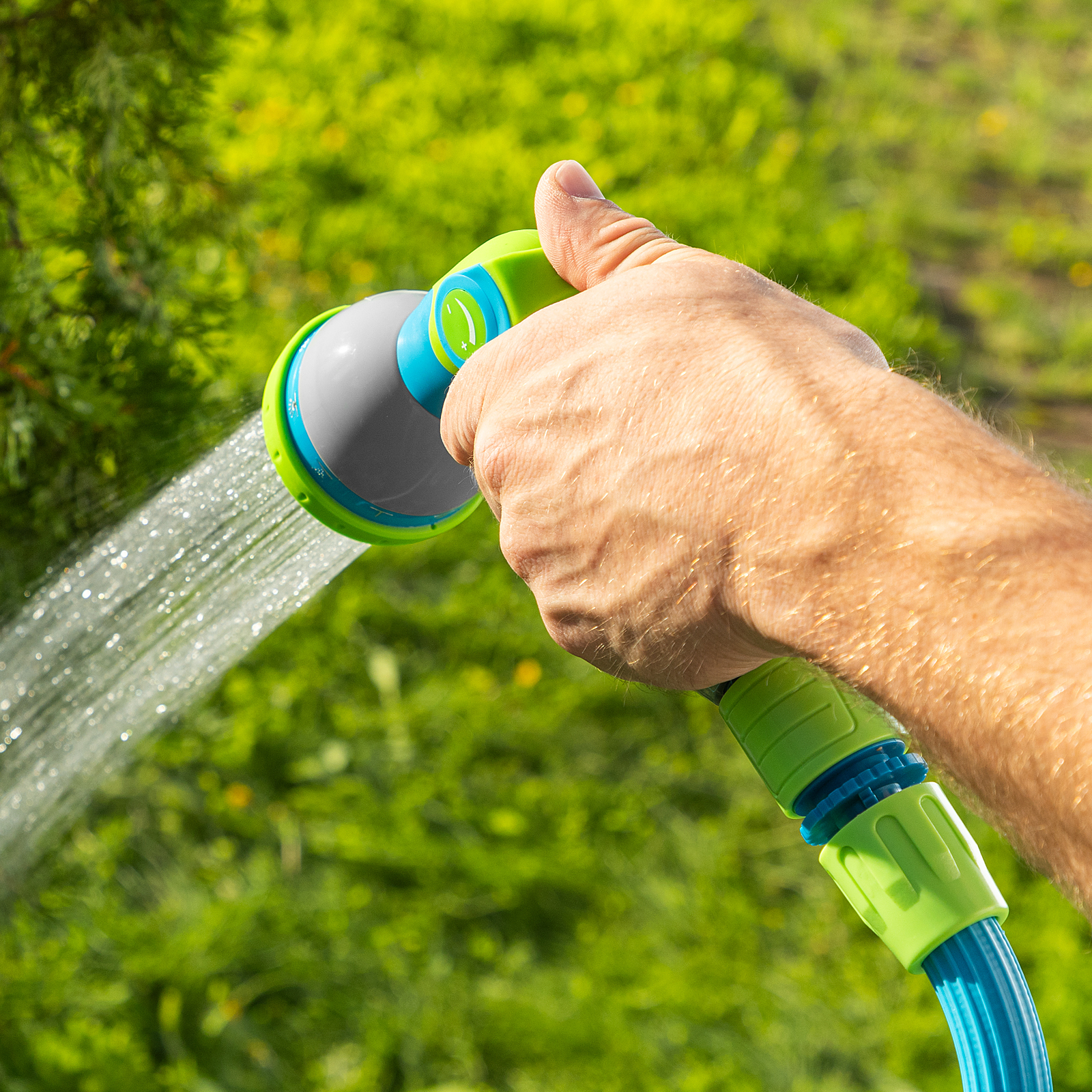 - Надежность и устойчивость к износу — силиконовый шланг с TPR-покрытием не деформируется, не перекручивается и не образует заломов, пистолет-распылитель из ударопрочного ABS-пластика устойчив к повреждениям.
