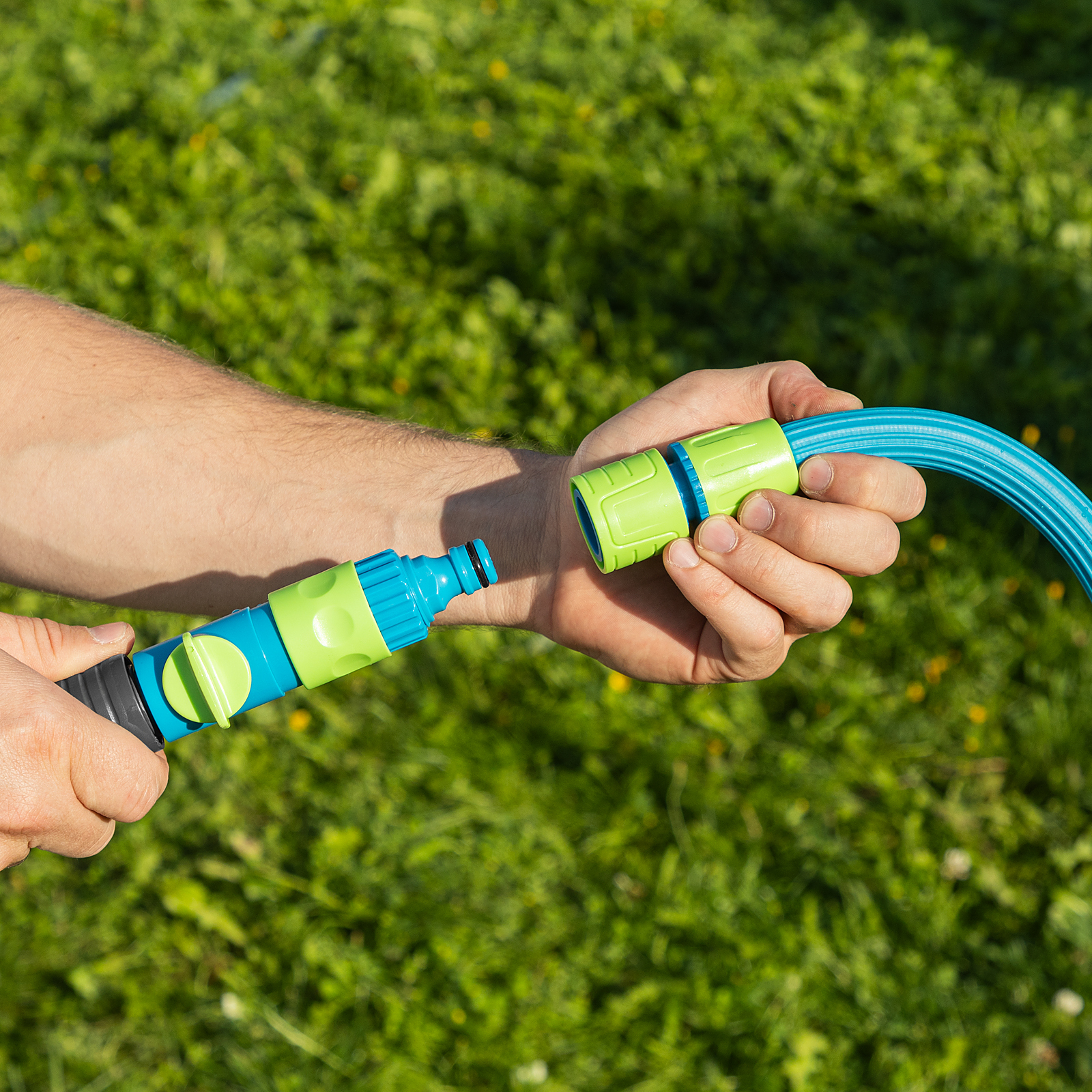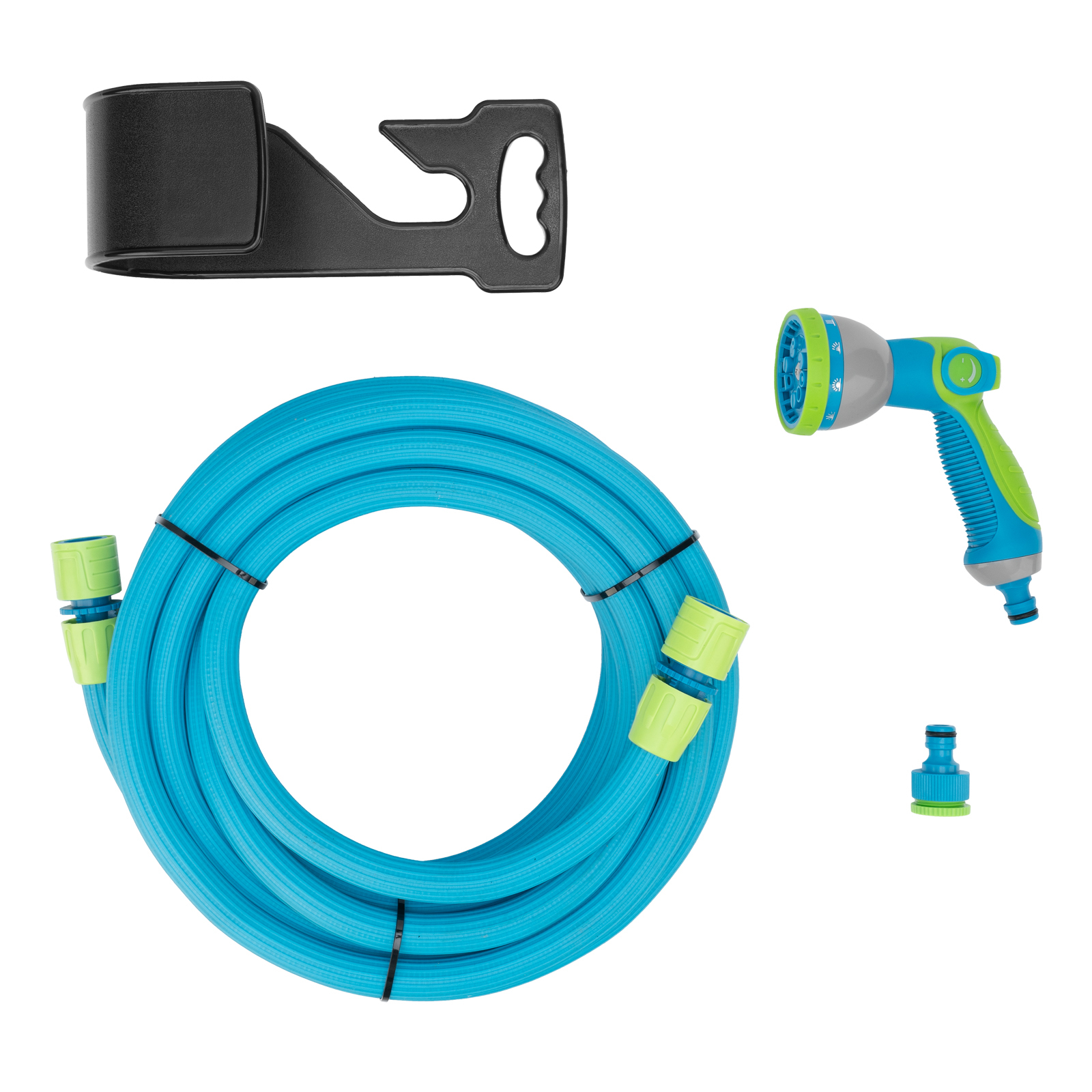 Поливочный набор Palisad LUXE 67671 включает в себя силиконовый шланг, растягивающийся до 22,5 м, 8-режимный пистолет-распылитель, штуцерный адаптер, чехол и подвес. Предназначен для полива растительности на дачном участке, в парке или сквере, также подходит для мойки автомобиля и различных поверхностей. Представляет собой полностью готовую к работе систему. Соединитель с переходником позволяет подключать шланг к крану или отводу с резьбовым выходом диаметром 1/2" или 3/4".